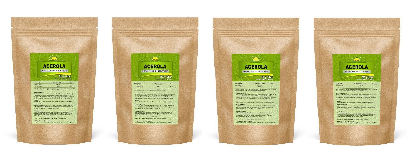 Premium Acerola-Extrakt (hochdosiert, mind. 25% Vitamin C), 1 kg (4x 250 g)
