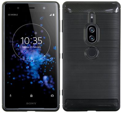 Silikon Hülle Carbon kompatibel mit Sony Xperia XZ2 Premium TPU Case Soft Handyhül
