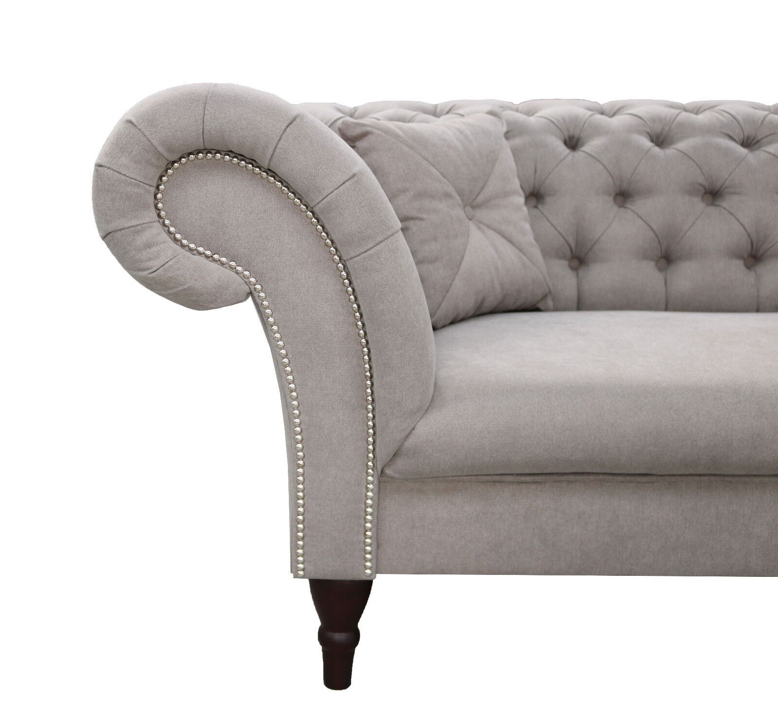 Premium Chesterfield Knightsbridge 3 ER SITZER SOFA KISSEN GRAU STOFF FARBEN