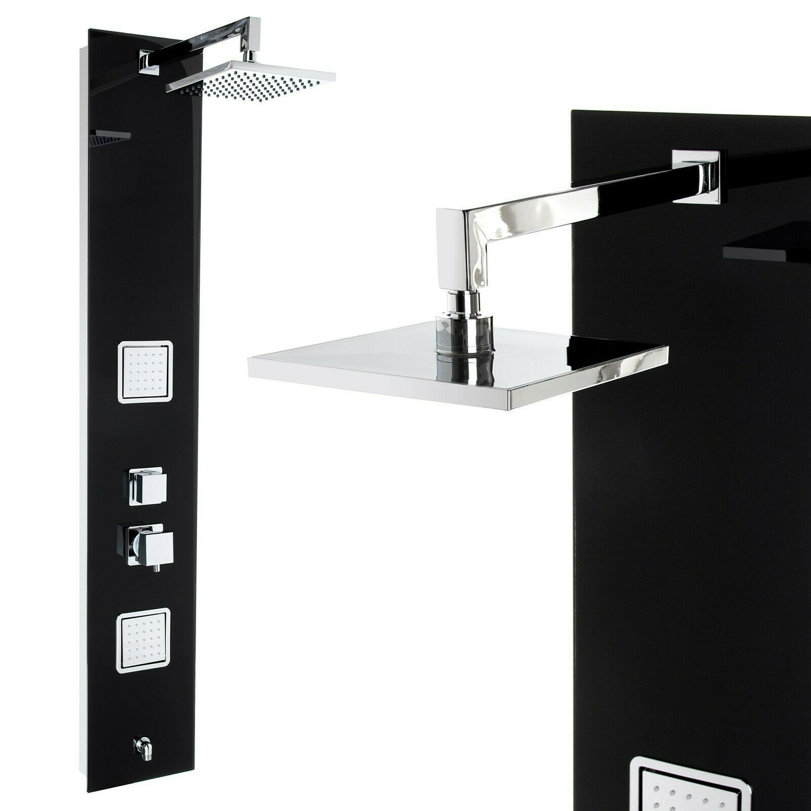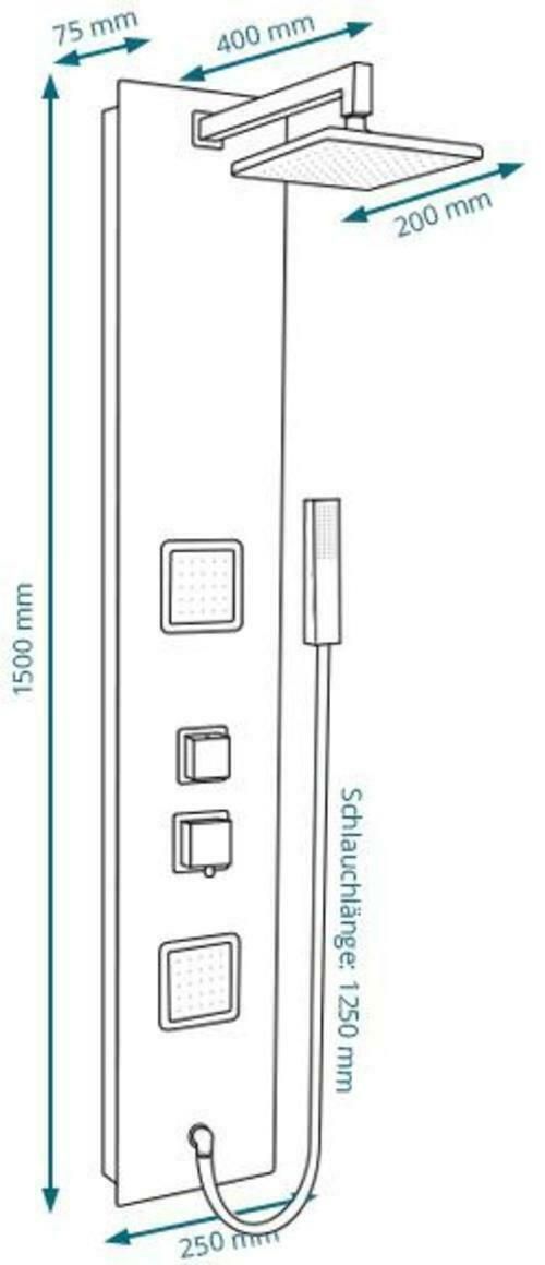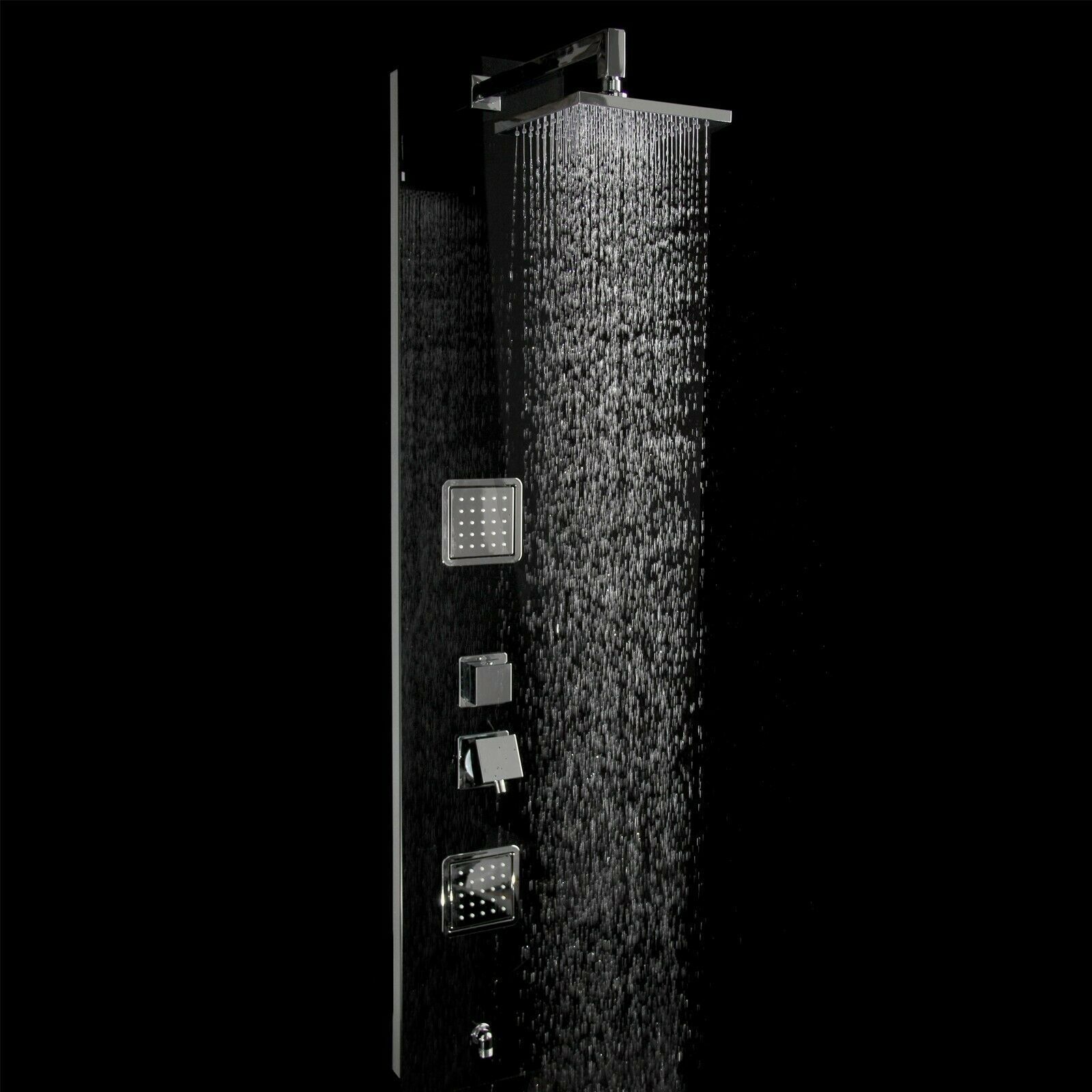 Premium Duschpaneel Schwarzes Glas 150cm Multi Funktionen Regendusche Duschsäule