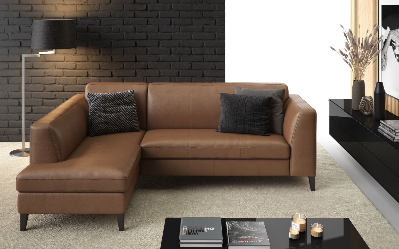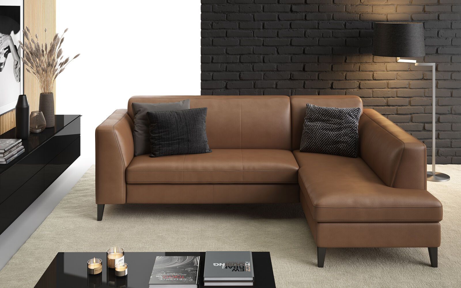 Premium Echtleder Ecksofa IN L-FORM COGNAC BRAUN Bettfunktion Bettkasten FARBEN
