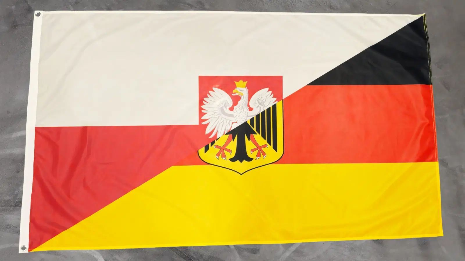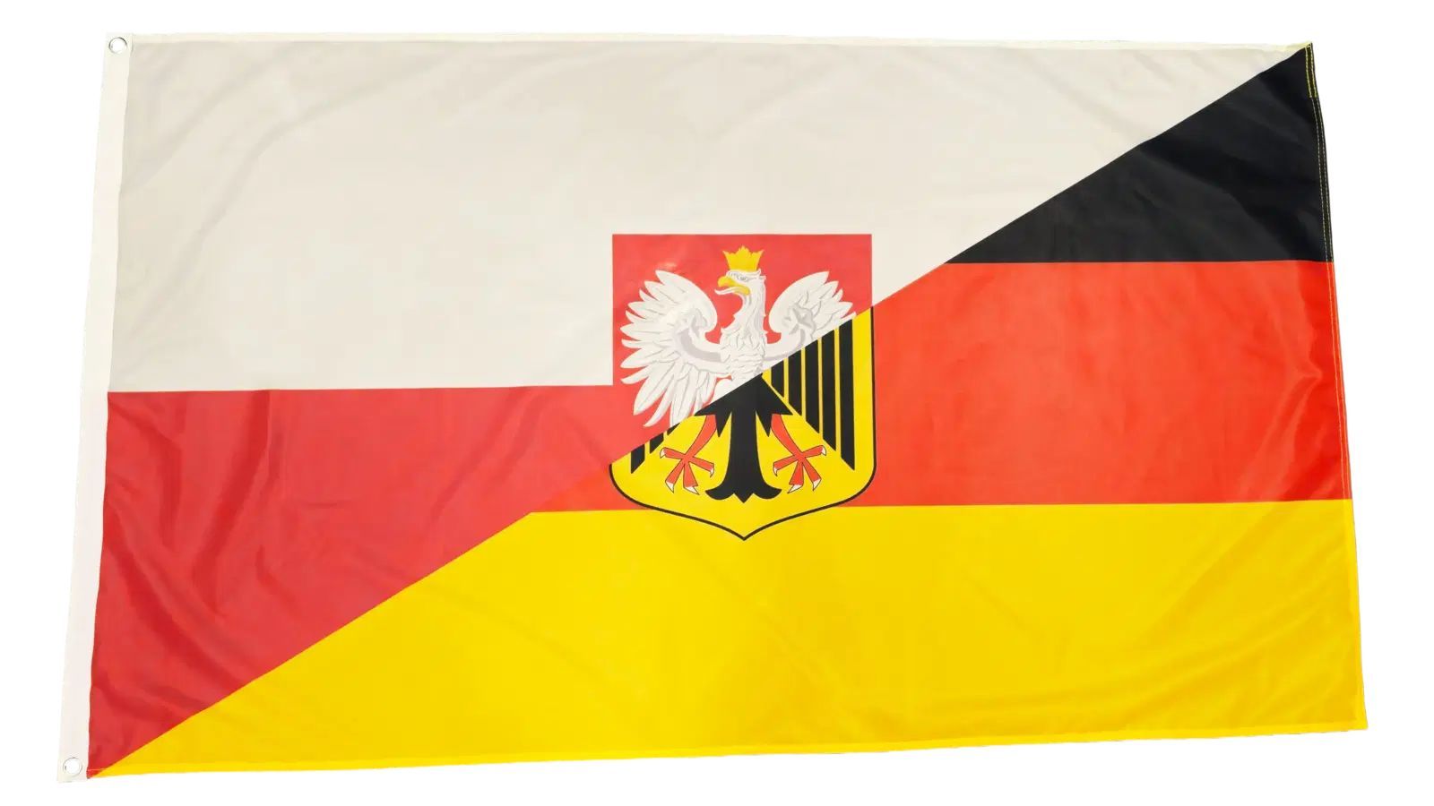 Premium Fahne Flagge Polen Deutschland Freundschaft mit Wappen - 90 x 150 cm