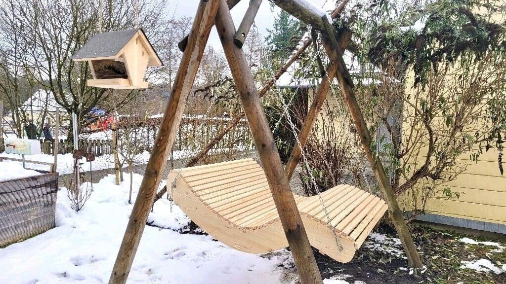 Hängeliege ,,Königssee Lieferung in großem Karton. Auch für den Innenbereich verwendbar! Wir verwenden heimische Hölzer in bester Qualität. Hergestellt mit Liebe in Deutschland. Lieferzeit ca. 10-14 Tage. Lieferbare Breite: 1. 120 cm Weitere Größen Breiten Ausführungen finden Sie in unserem Shop! Gr