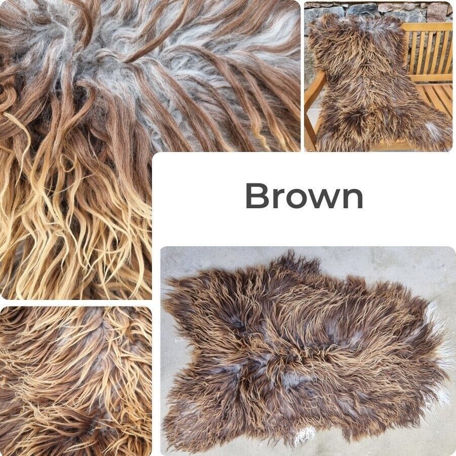 Premium Island Schaffell Natur Curly Langhaarig Naturfarbe Multicolor Teppich
