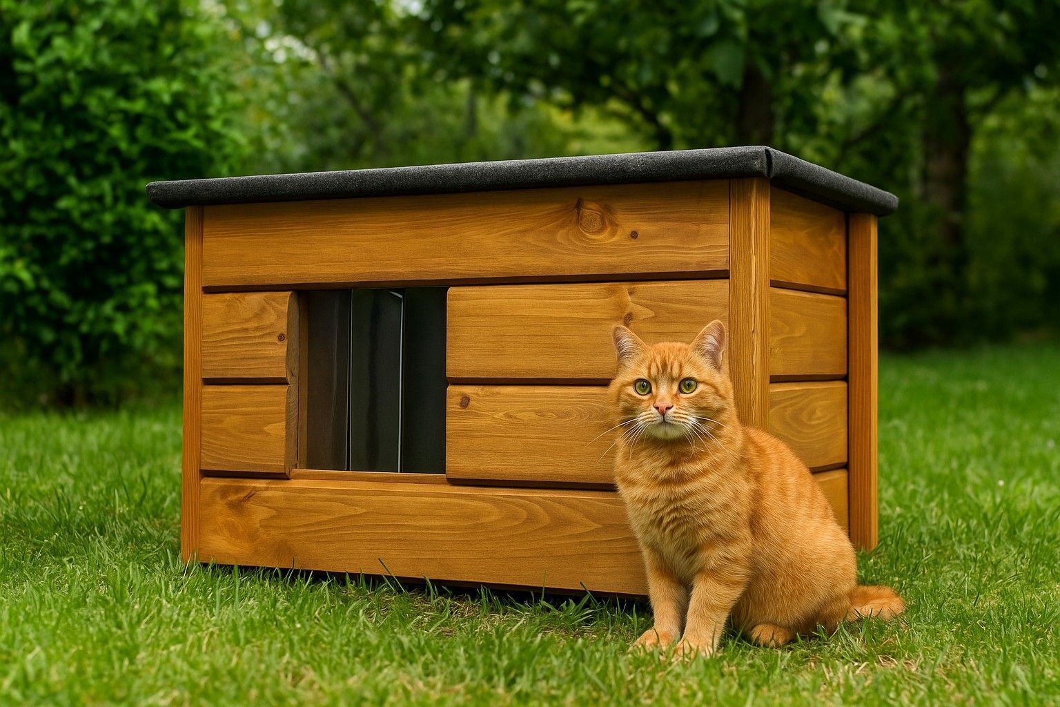 Premium Katzenhaus isoliert - teak - 57x47x33 cm / fertig zusammengebaut