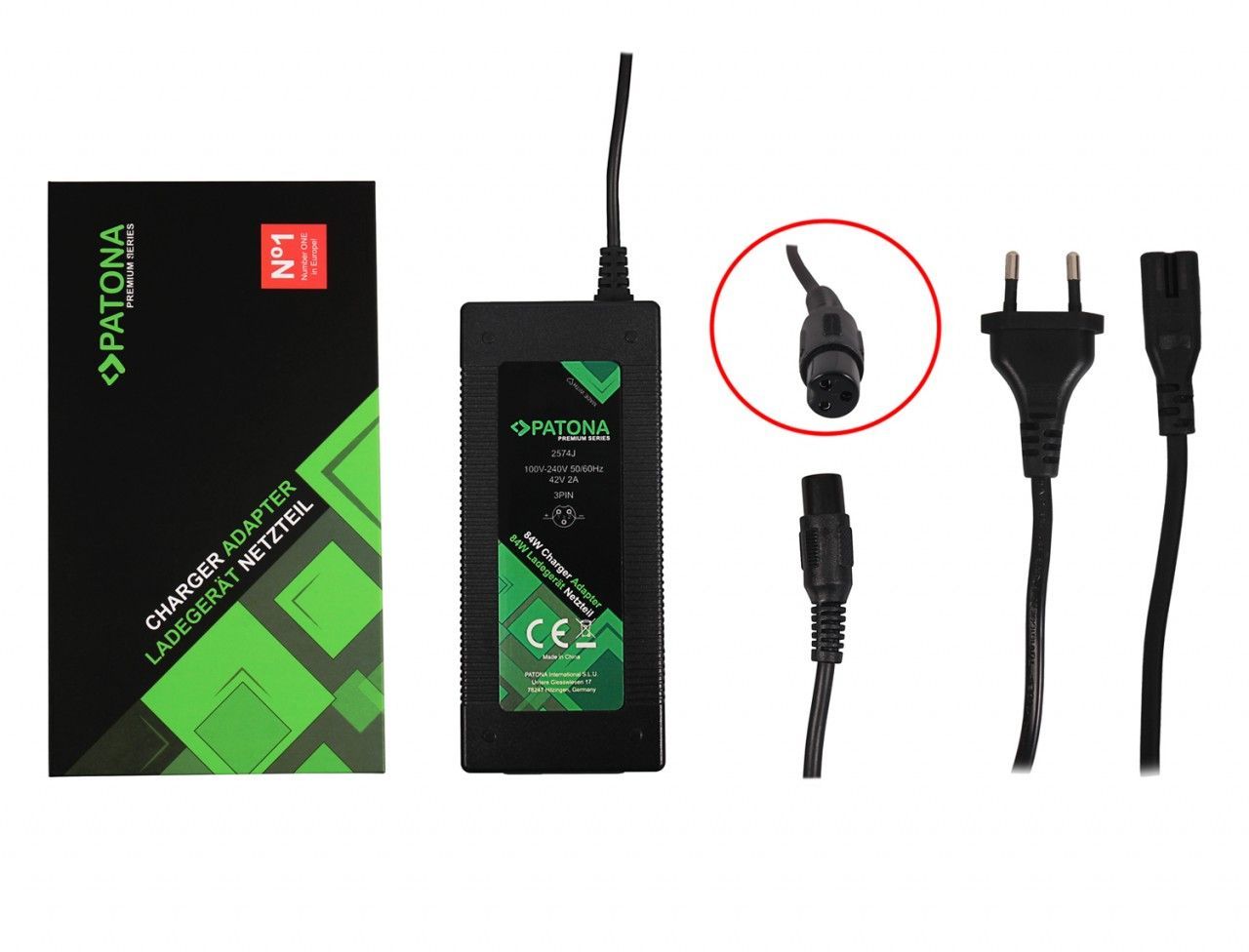 Premium Netzteil 42V 2A 3-pin für 36V E-Scooter Roller Skateboard E-Bike