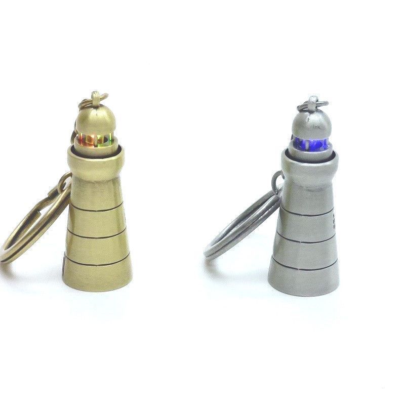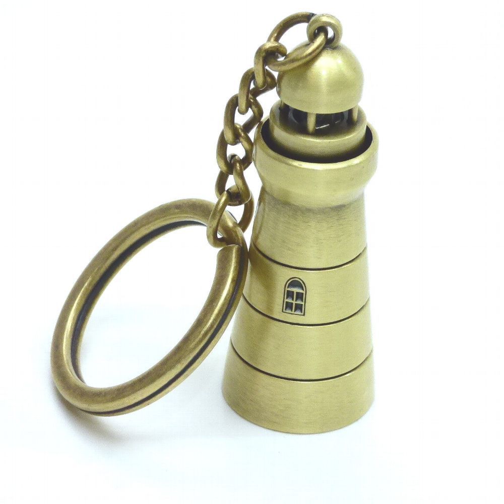 Premium Schlüssenanhänger Leuchtturm mit LED in Messing Antikoptik oder Messing