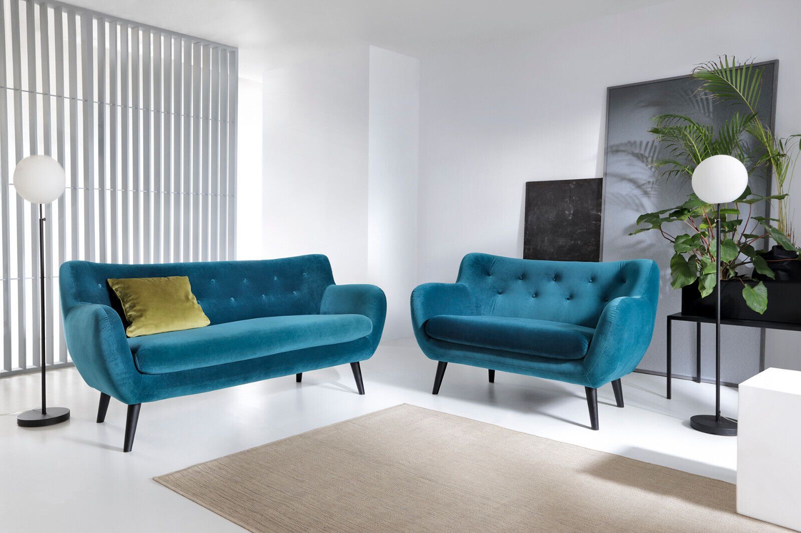 Premium SET 1-2-3-HO Garnitur 3 SITZER SOFA HOCKER SESSEL SAMT Vintage FARBEN