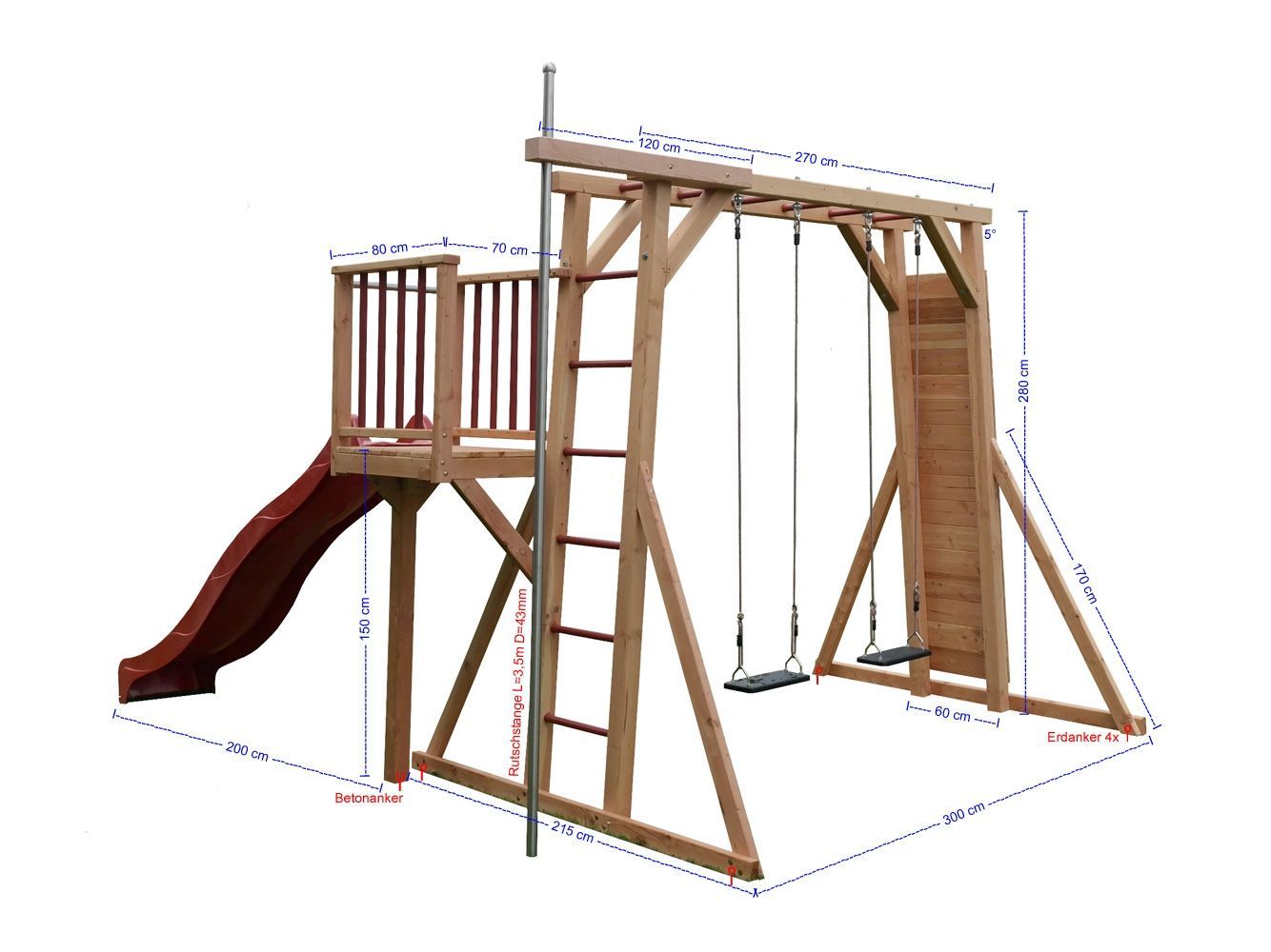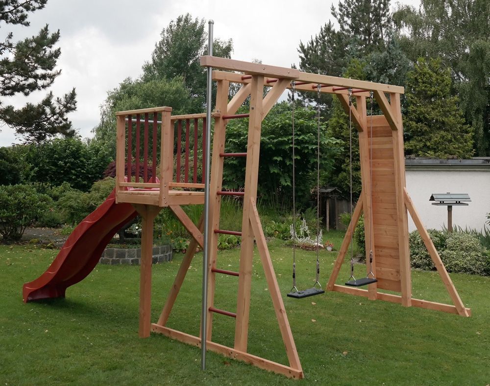 Premium Spielturm Thor-2D aus Douglasie | Schaukel mit Rutsche | Kletterwand