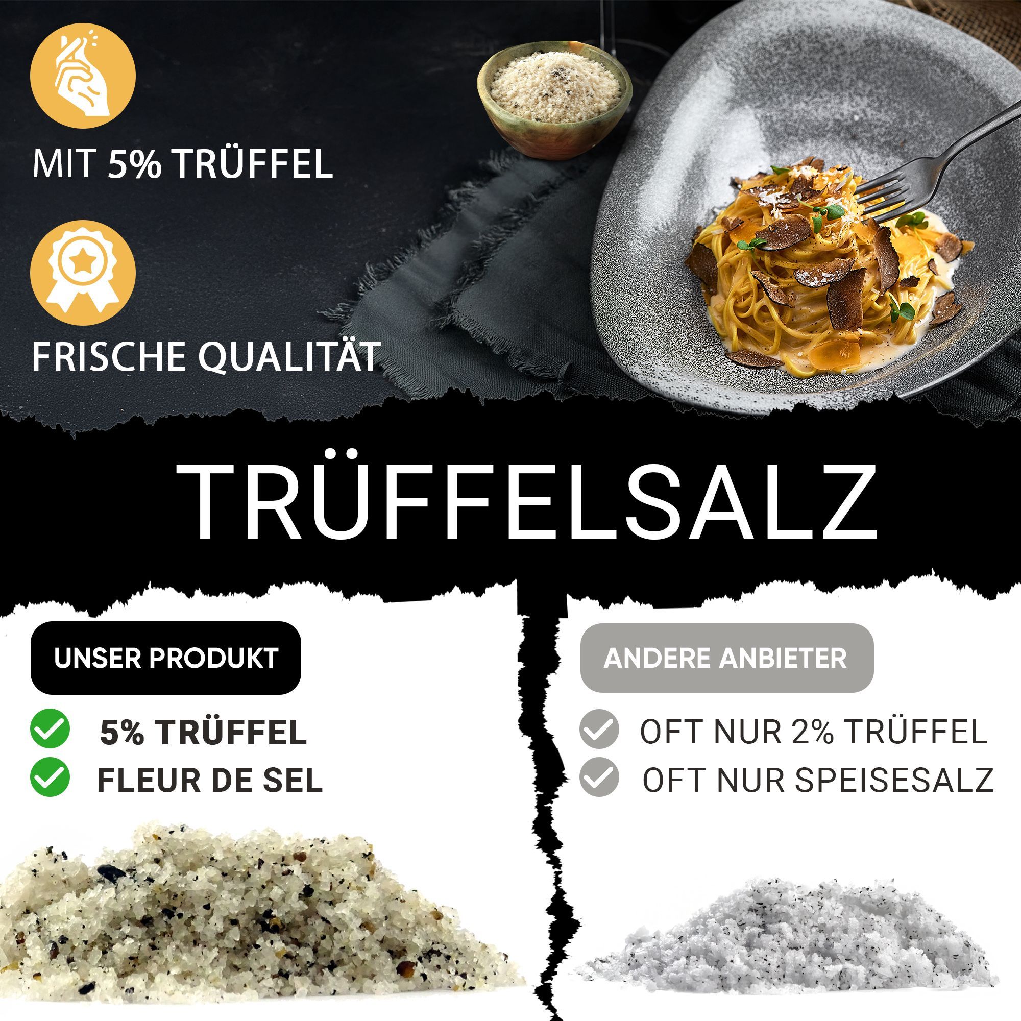 Premium Trüffelsalz mit 5% Trüffel | Gourmet Fleur de Sel Trüffelgewürz - 50g