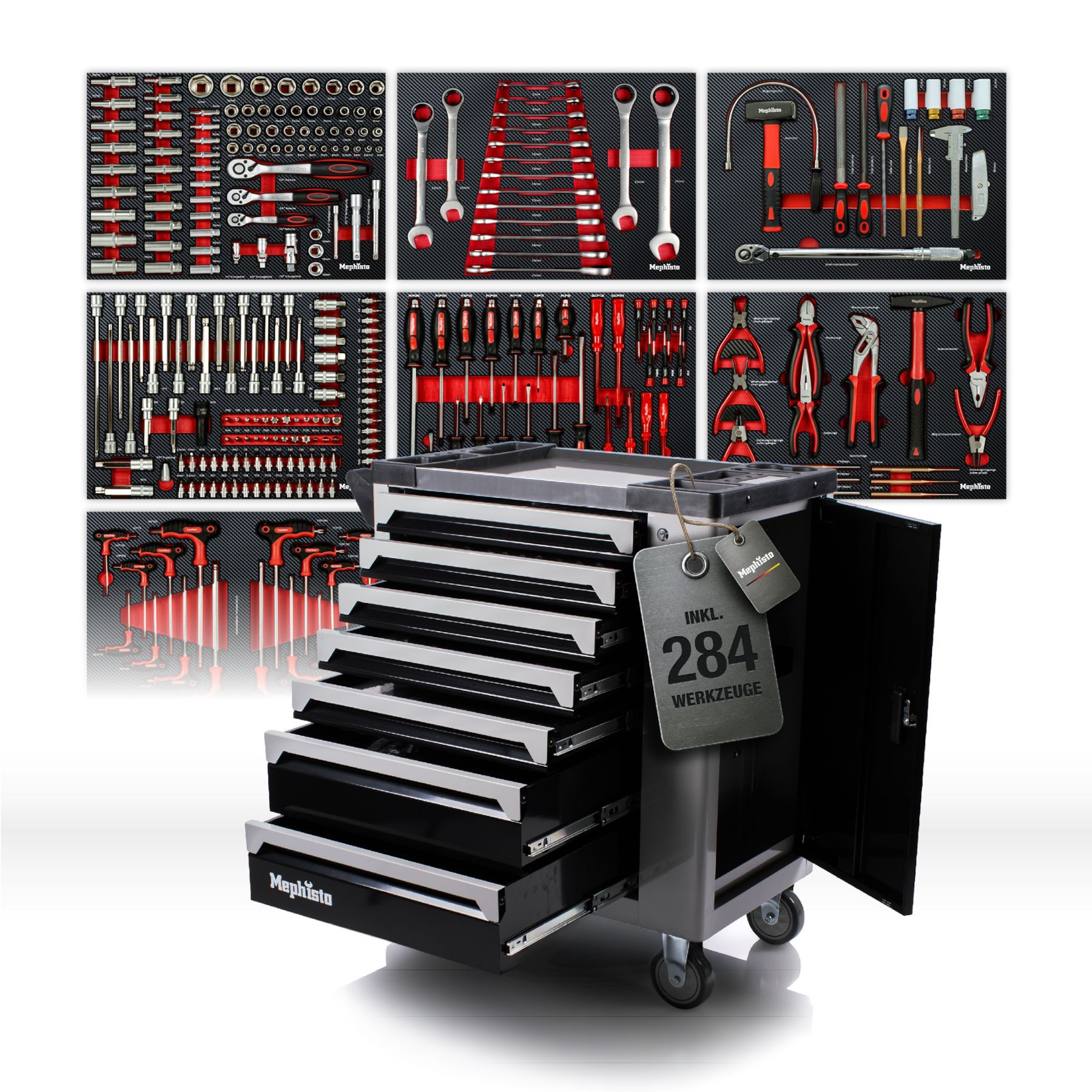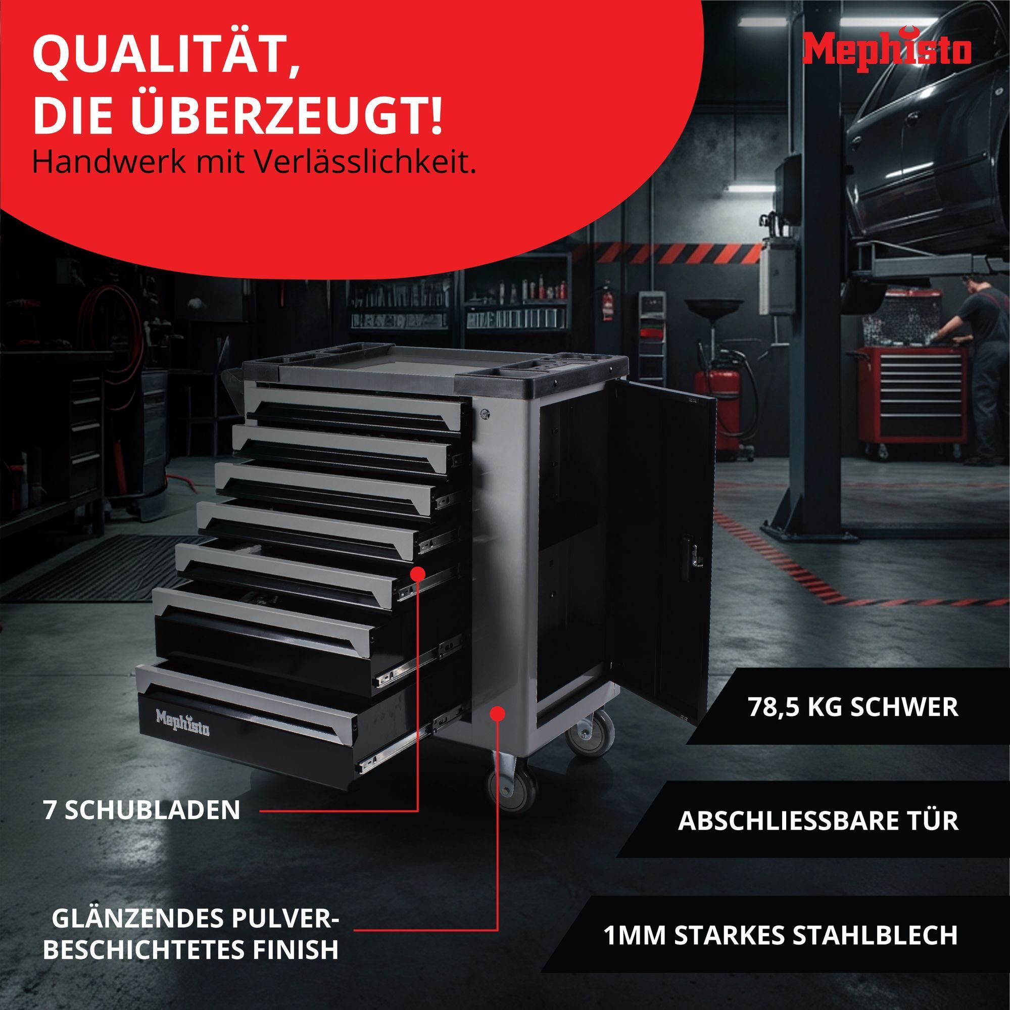 Premium Werkzeugwagen 7 Schubladen inkl Werkzeug CR-V Schaumeinlagen Werkstattwagen