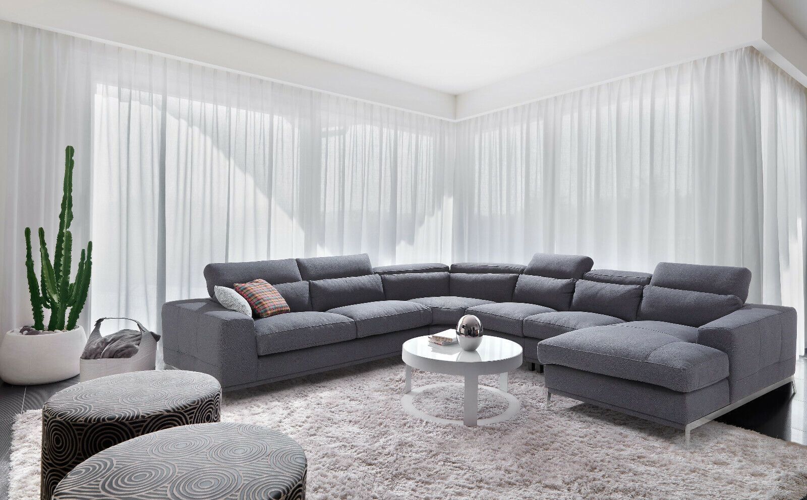 Premium XXL Wohnlandschaft Ecksofa Verstellbare Kopfstütze FARBEN U-FORM STOFF
