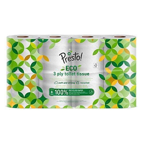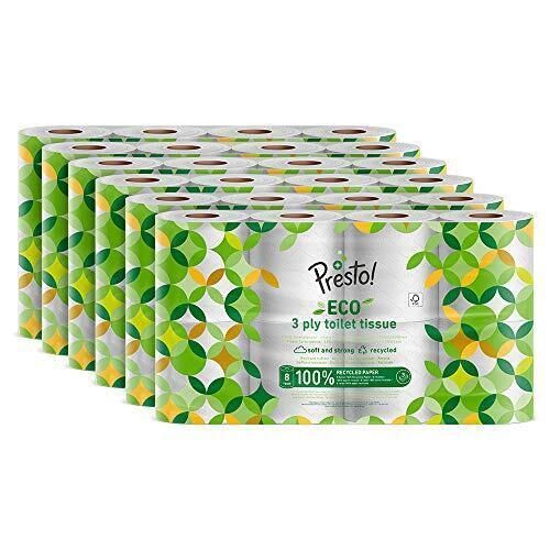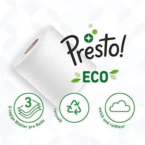 Presto! 3-lagiges ECO Toilettenpapier 48 Rollen 9600 Blätter 3-lagig Klopapier