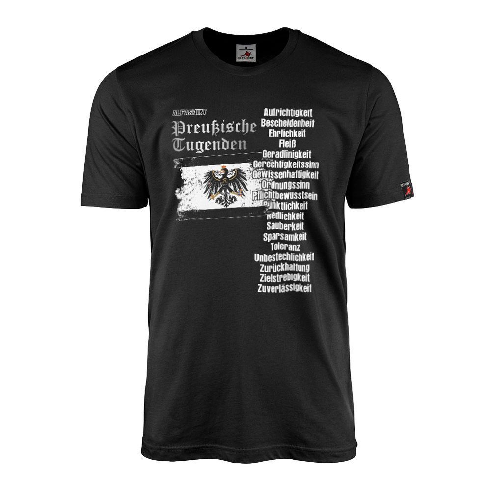 Preußische Tugenden Preußen Pünktlichkeit Ordnung Fleiß Alter Fritz Fahne 22207 Produktinformationen Geiles Motiv > Qualität > Ökologisch > gönn?s dir! Bei unseren Textilien legen wir höchsten Wert auf ökologische qualitative und soziale Standard in der Herstellung. Unsere Shirts und Druckverfahren
