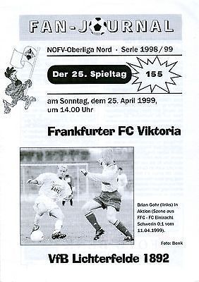 Fußball-Programm (Stadionheft programme program programma Matchprogramm) FAN-JOURNAL zum Spiel der NOFV-Oberliga Nord (Deutschland GERMANY) Frankfurter FC Viktoria (vorher FC Vorwärts Frankfurt an der Oder) vs VfB Lichterfelde 1892 (später als Lichterfelder FC LFC Berlin spielend) am 25. 4. 1999 ( c
