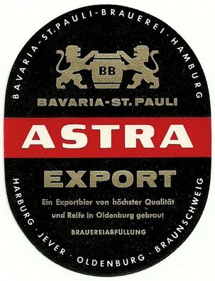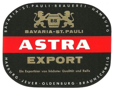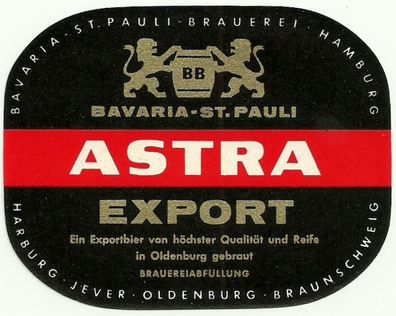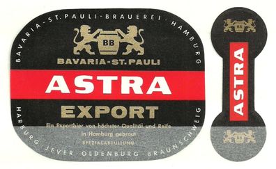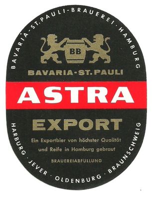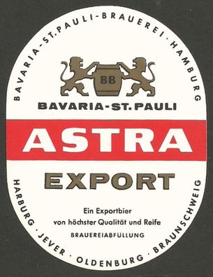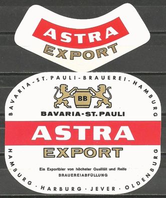 Bieretikett "ASTRA Export" Bavaria-St.-Pauli Br. Hamburg Harburg Jever Oldenburg