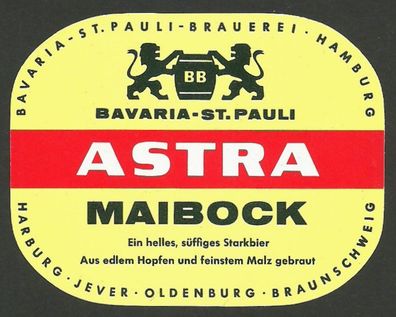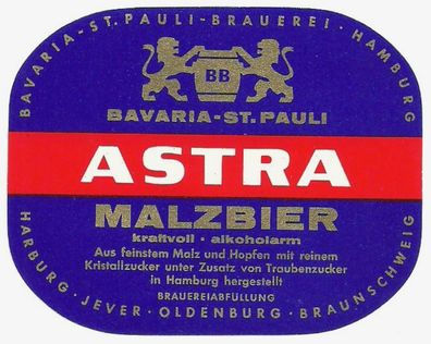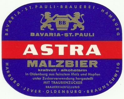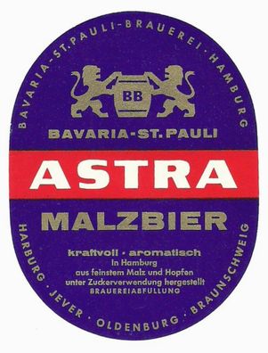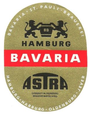 Bieretikett "ASTRA" Bavaria-St.-Pauli Brauerei Hamburg Harburg Oldenburg Jever