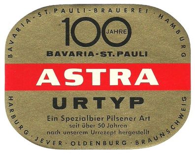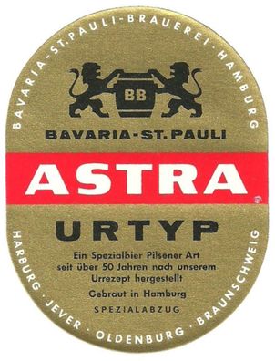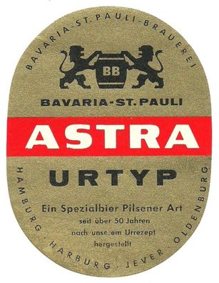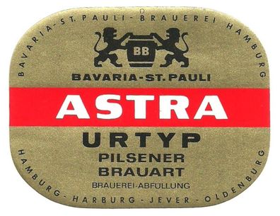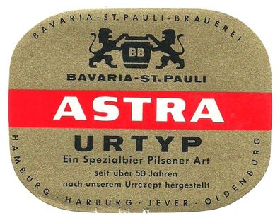 Bieretikett "Astra Urtyp" Bavaria-St.-Pauli Brauerei Hamburg Harburg Jever Oldenburg