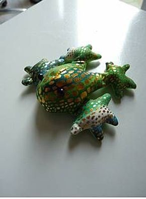 Stoff Frosch mit Kügelchen befüllt grün gold