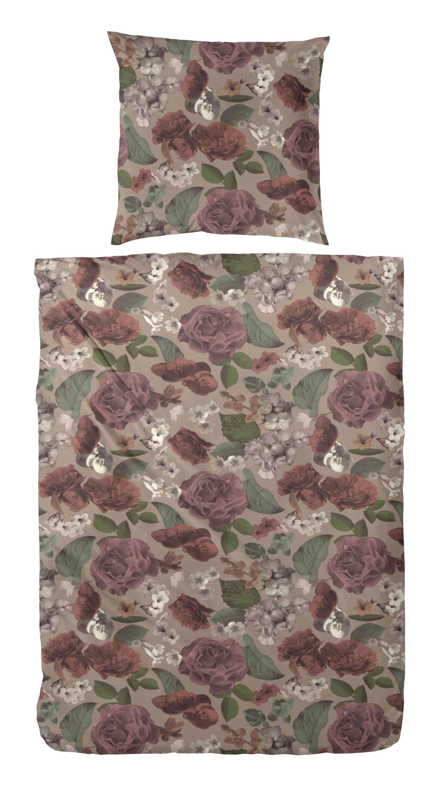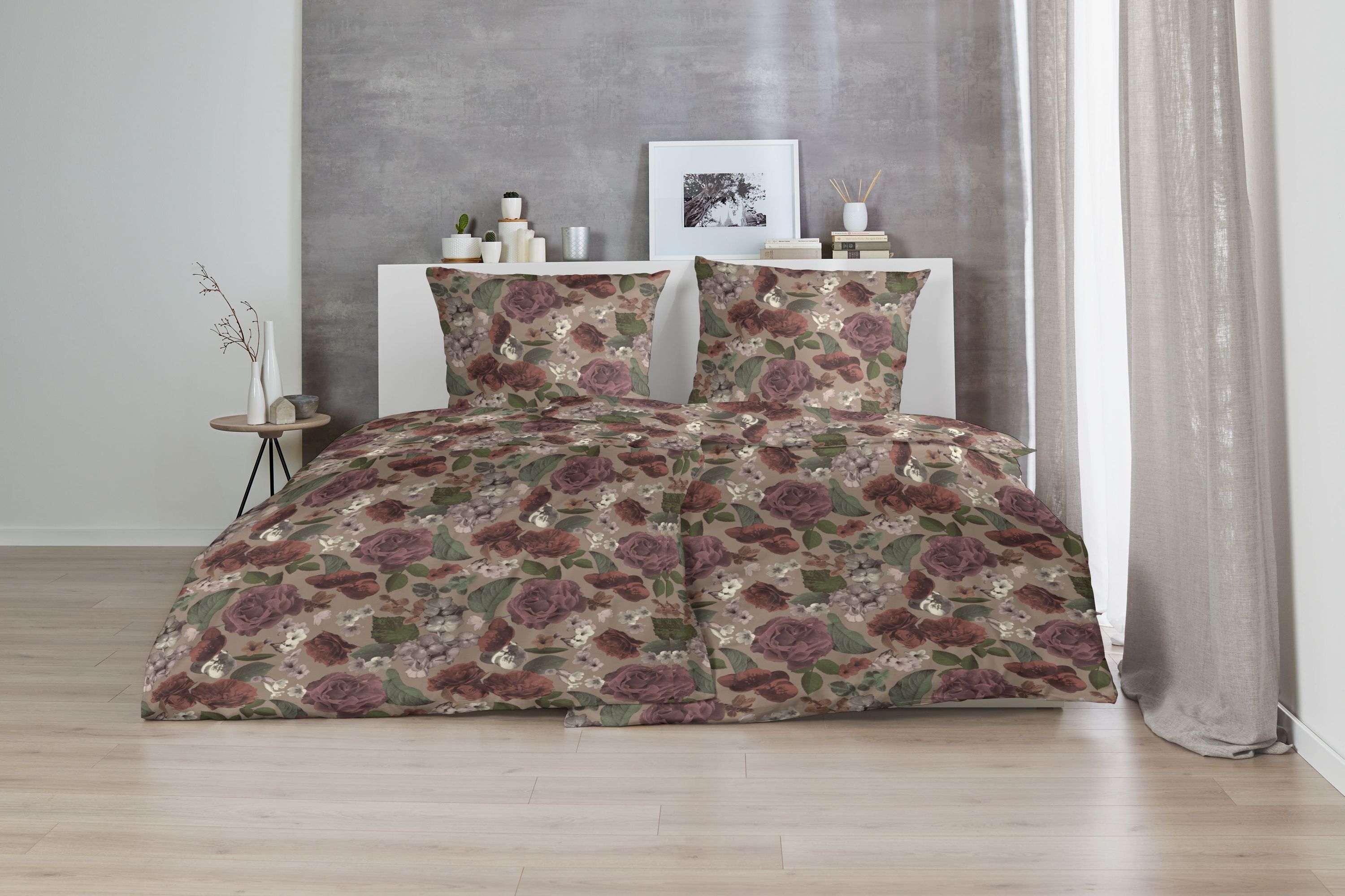 Primera Primera Edelflanell Bettwäsche 135x200 Blüten Rosen burgund taupe grün 174141-77