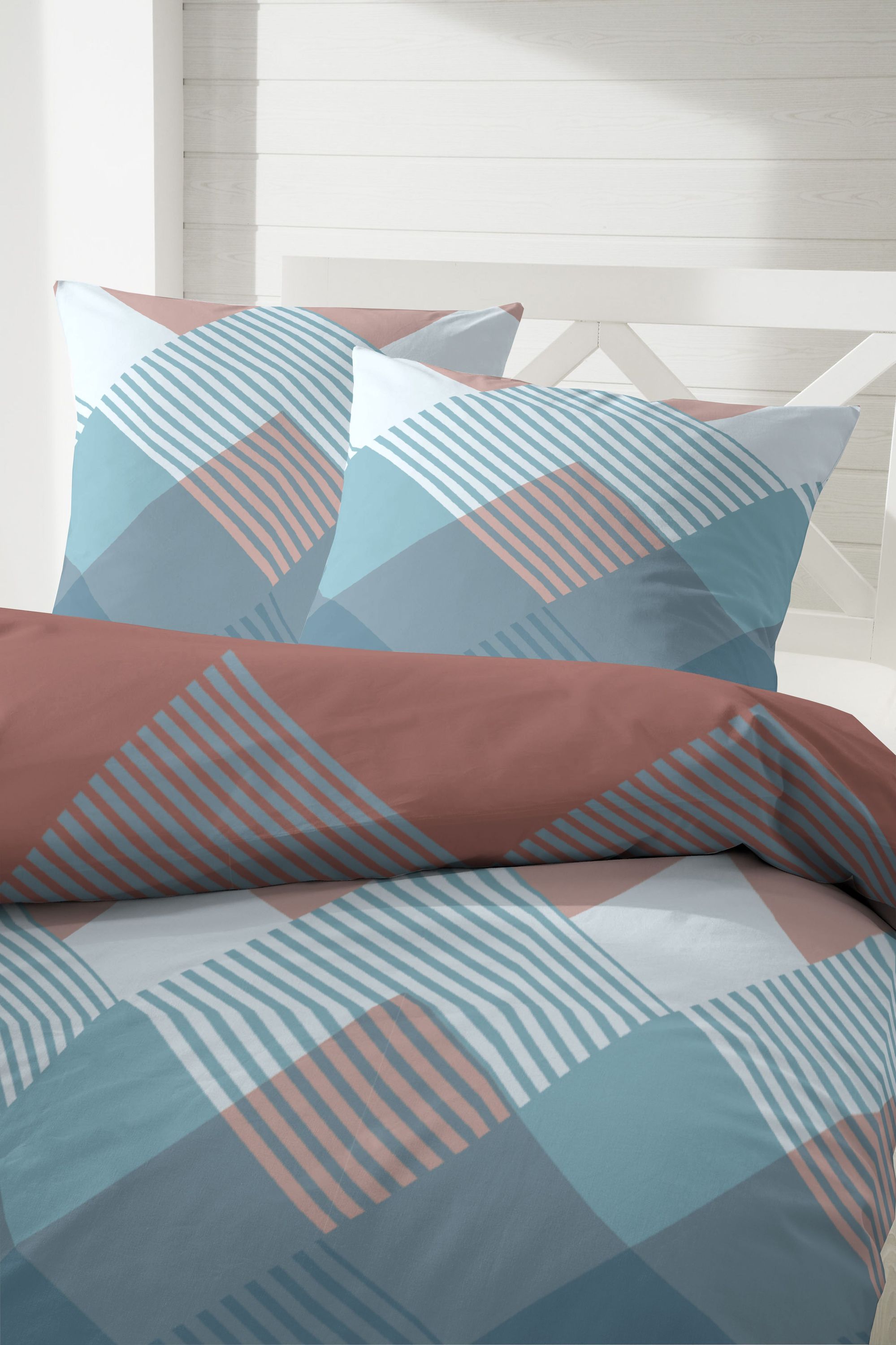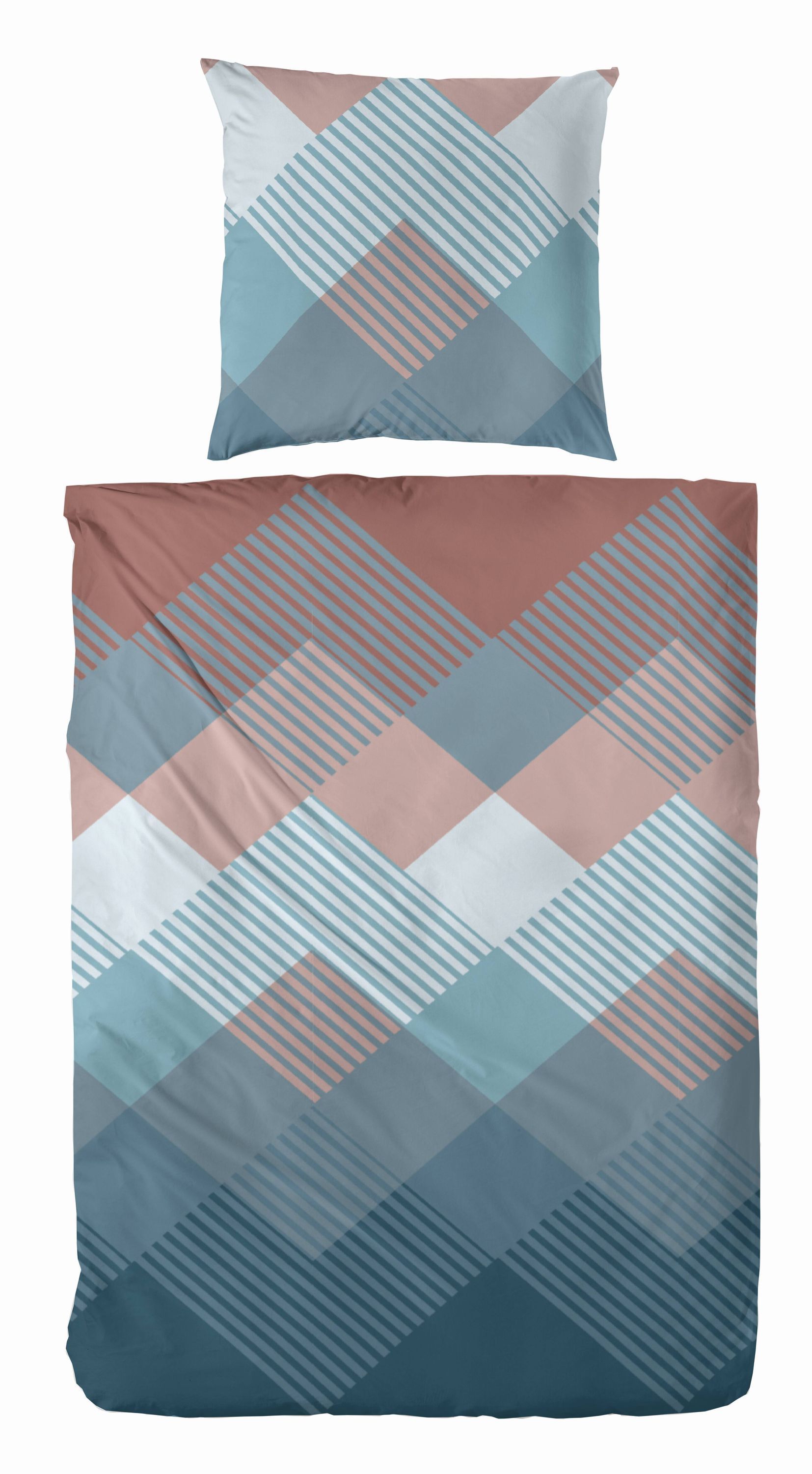 Primera Primera Edelflanell Bettwäsche 155x220 Rauten geometrisch blau rost 174135-037