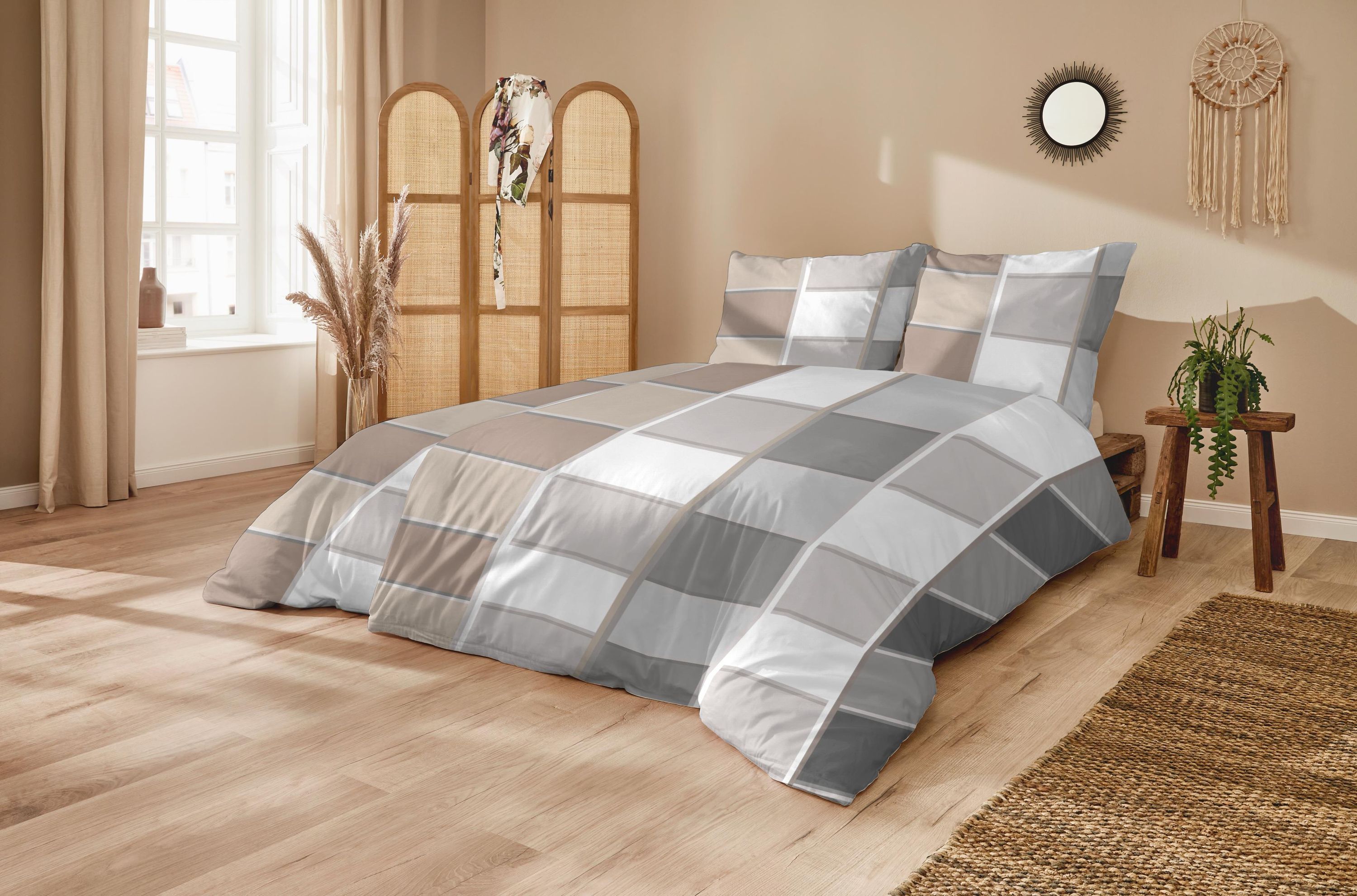 Primera Primera Mako-Satin Bettwäsche 135x200 Karo grau silber braun 243227-87