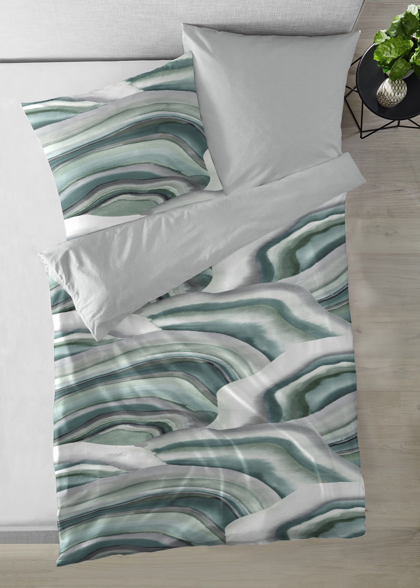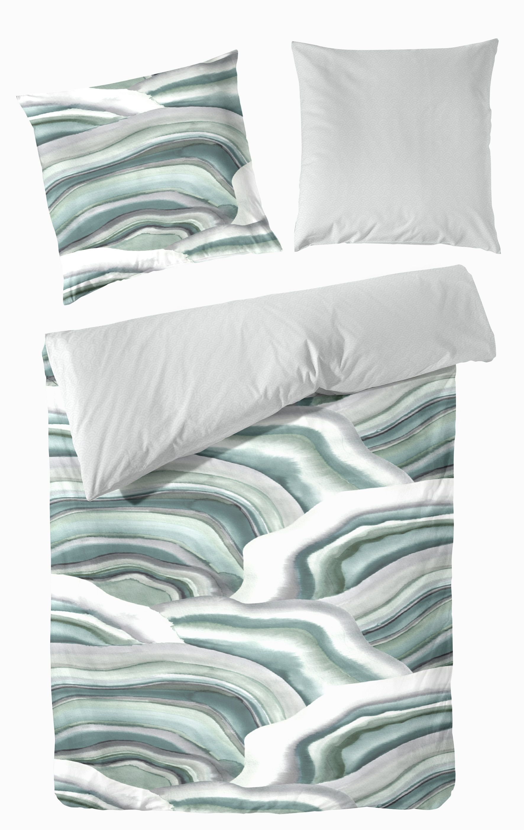 Primera Primera Mako-Satin Bettwäsche 135x200 Wende Wellen abstrakt grün smaragd 243223-58