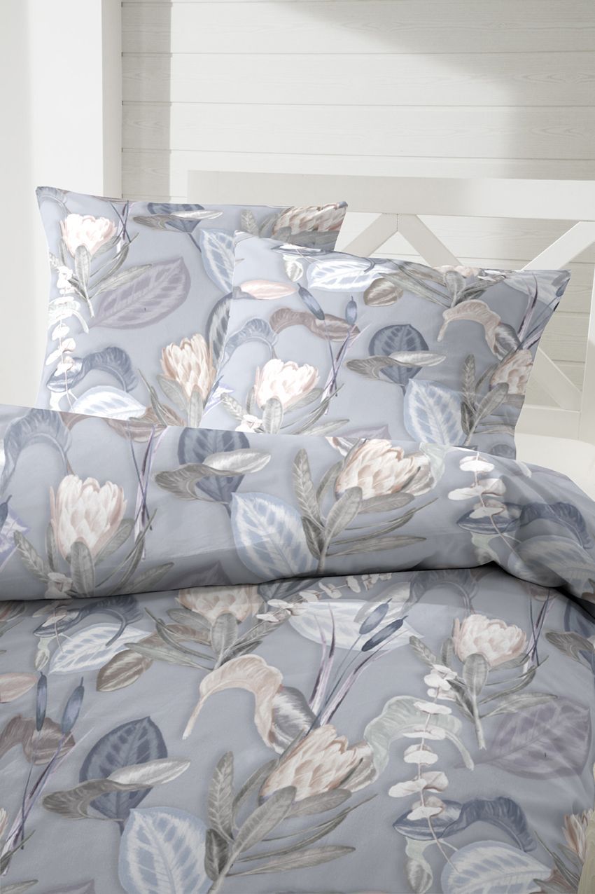 Primera Primera Mako-Satin Bettwäsche 155x220 Blätter Blüten natur grau 243218-83