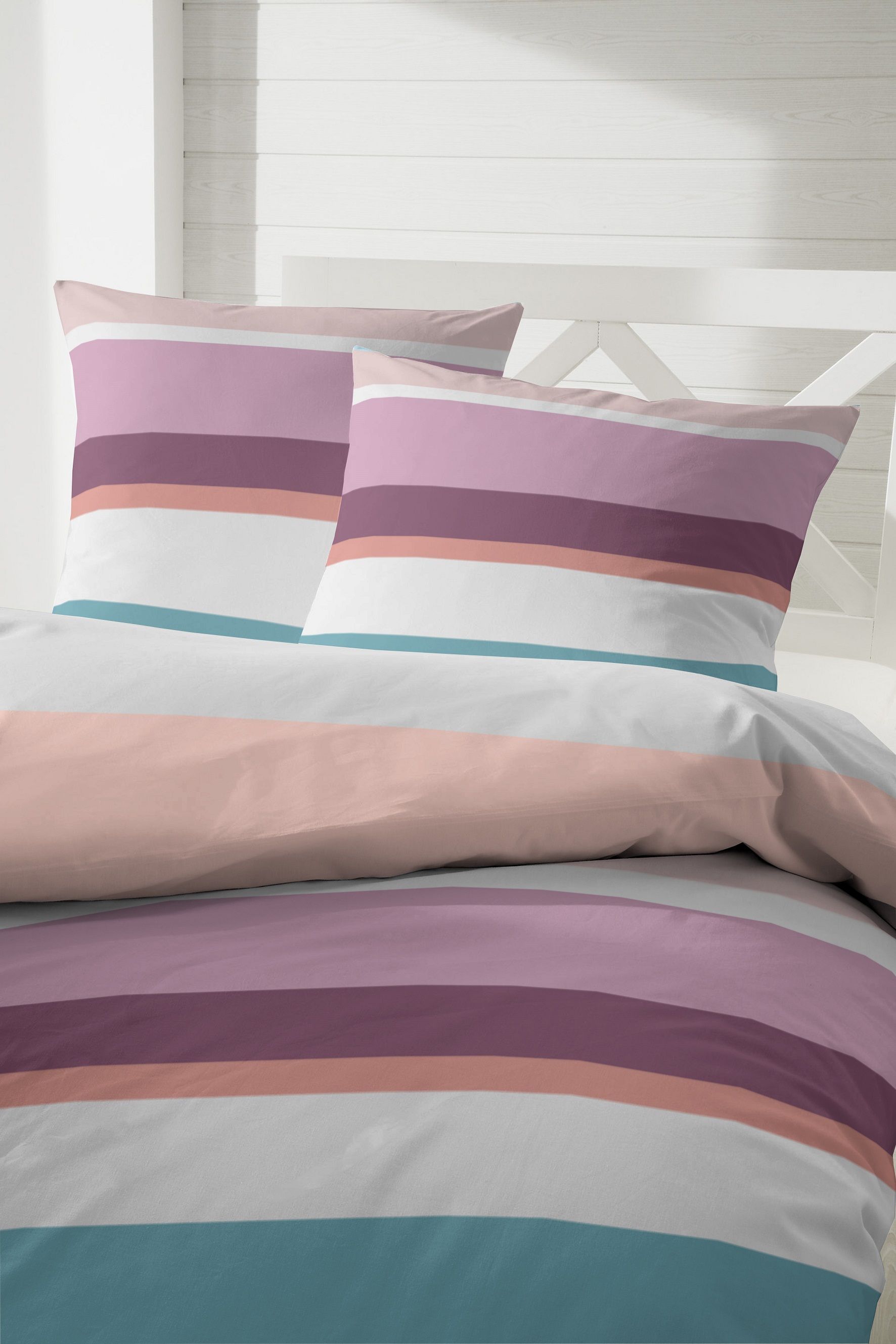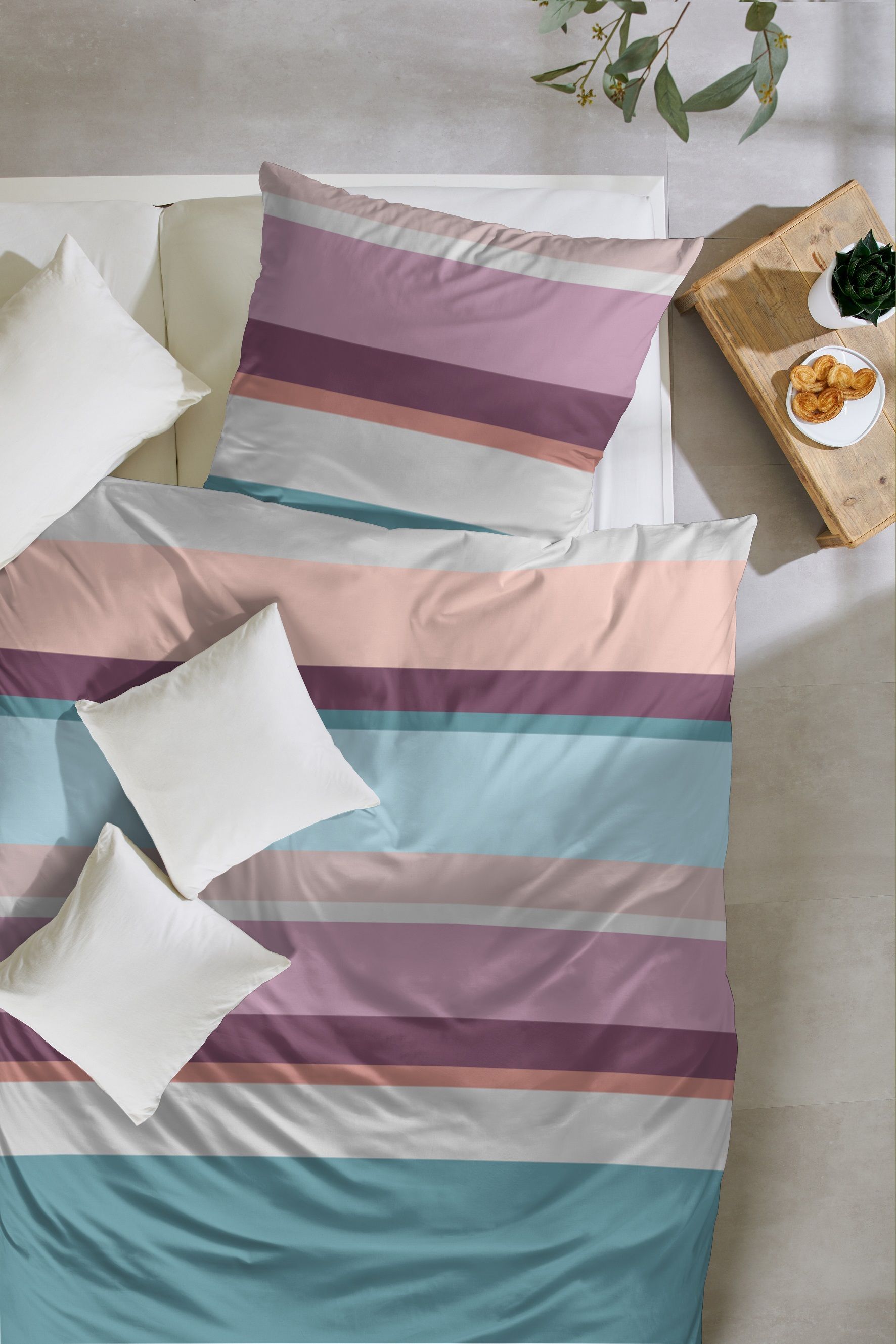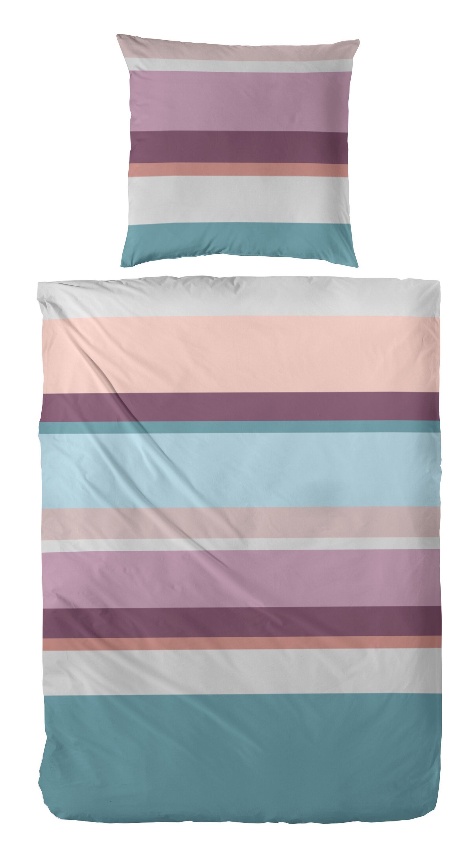Primera Primera Mako-Satin Bettwäsche 155x220 Streifen petrol aubergine 243205-56