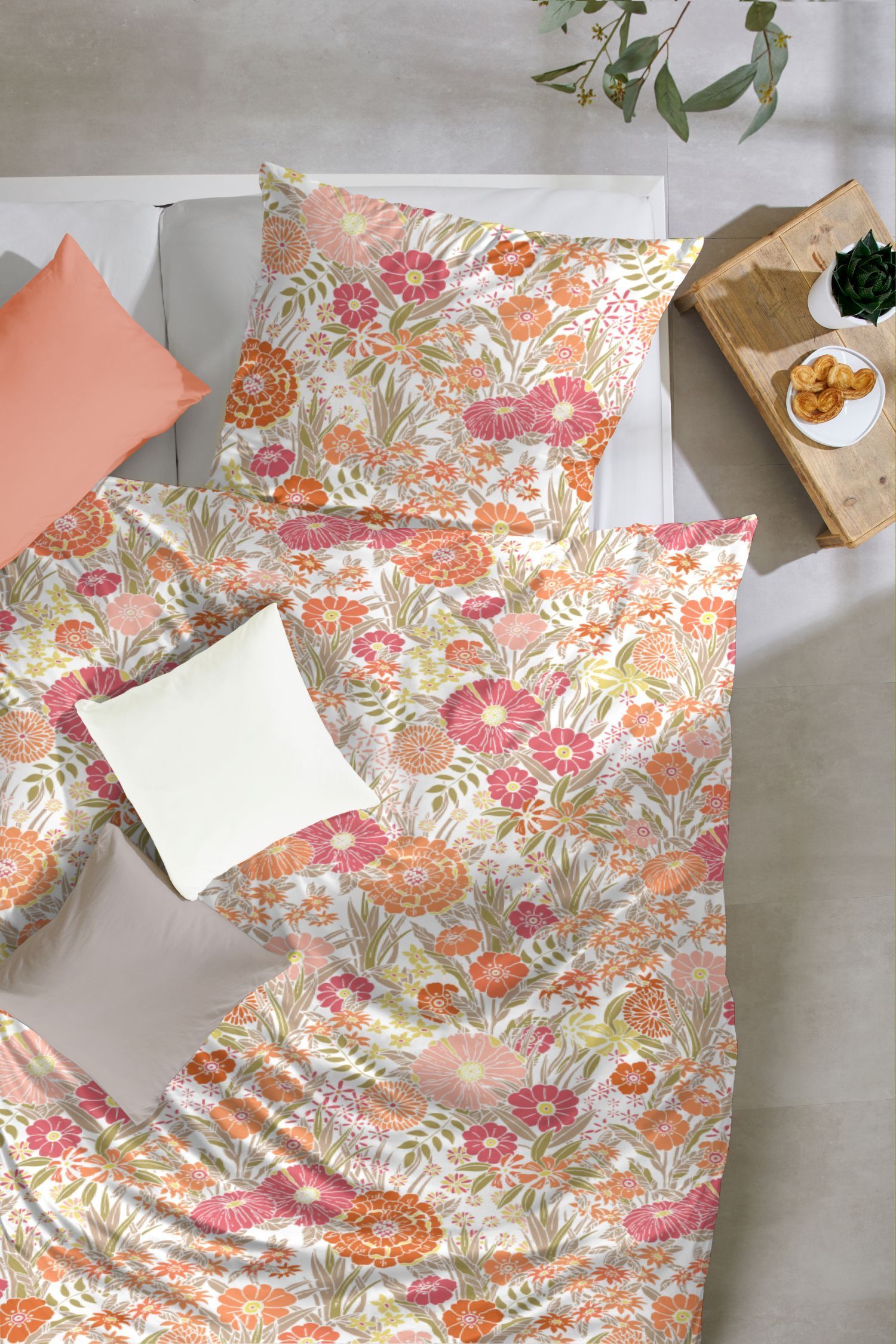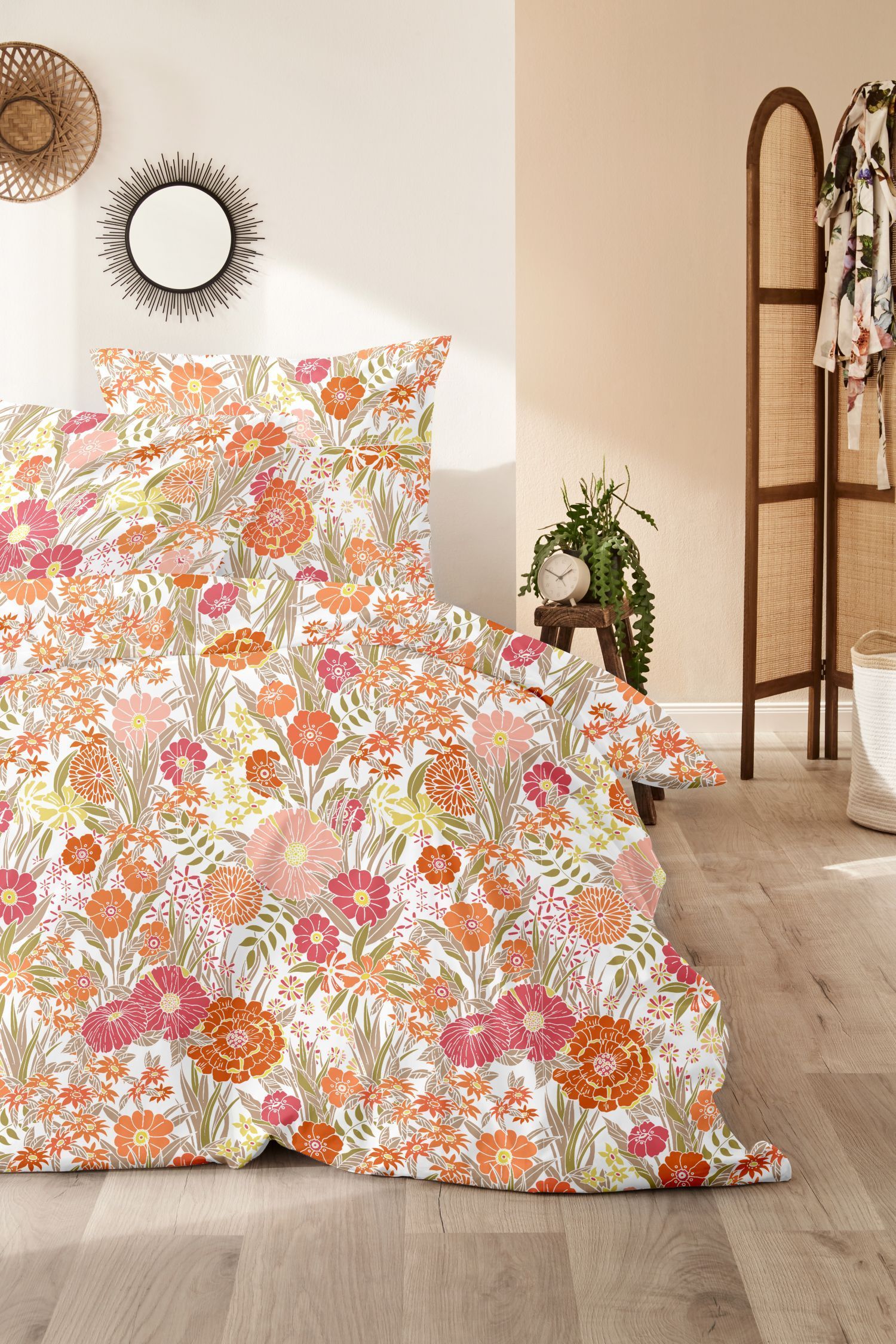 Primera Primera Perkal Bettwäsche 135x200 Blumenwiese Flowerpower pink orange 133050-72