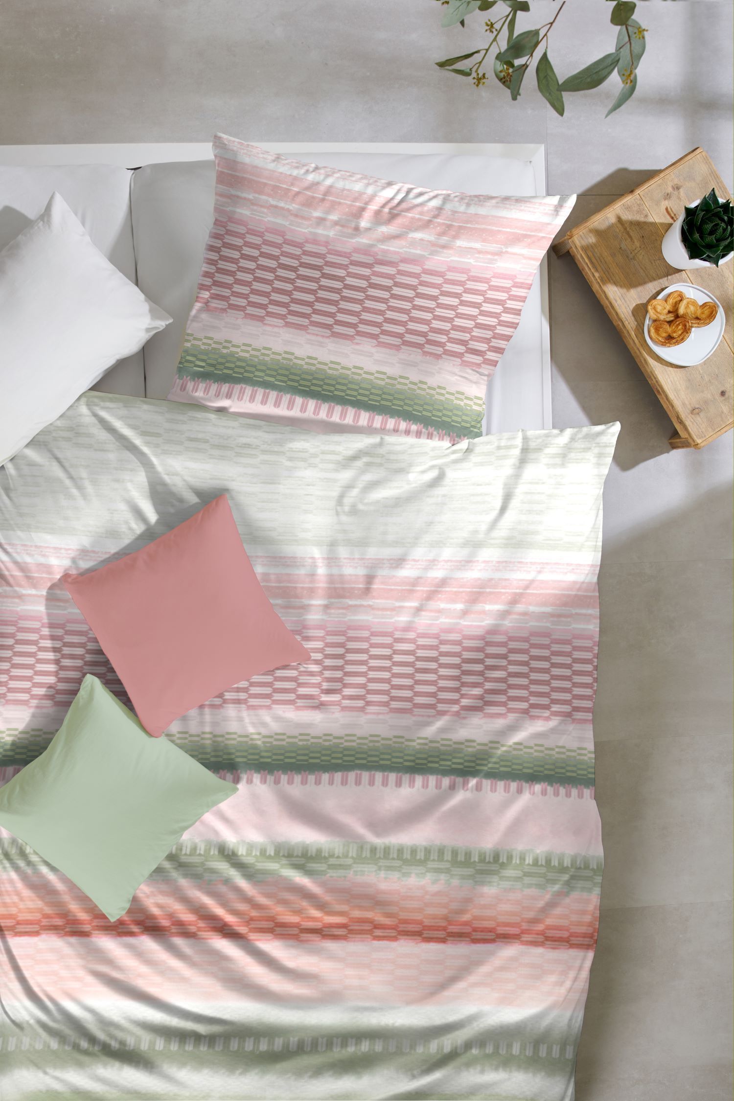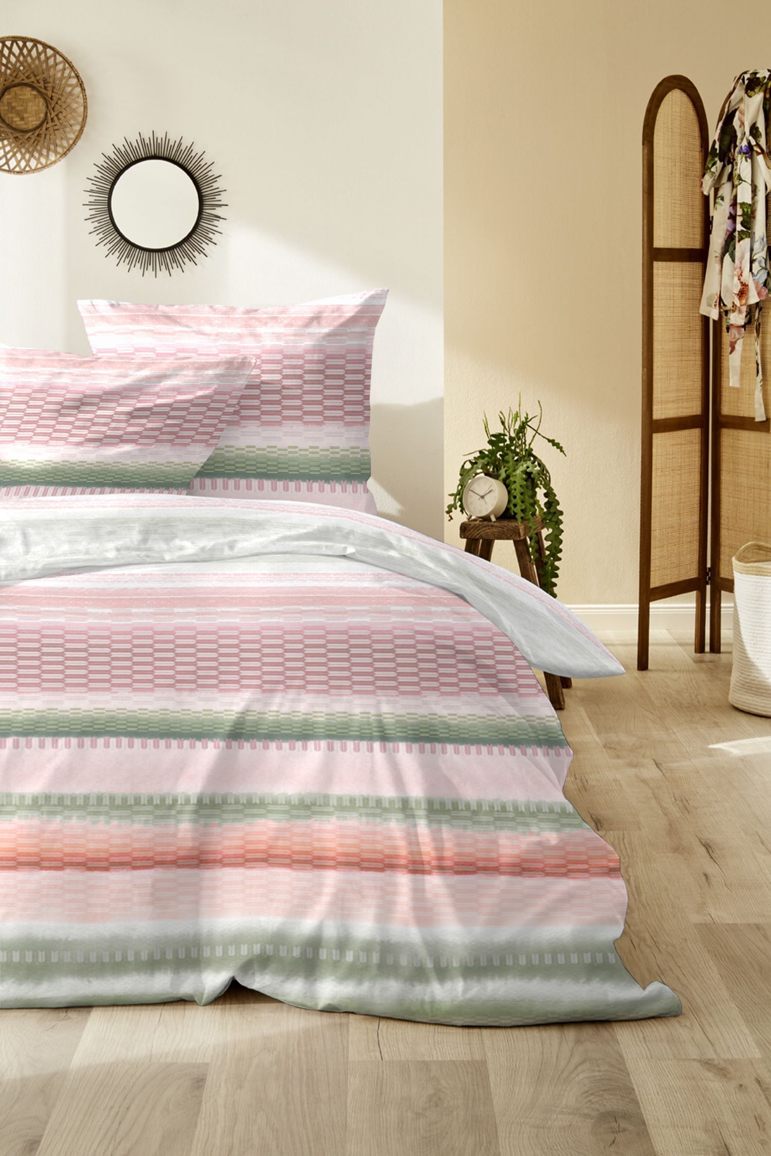 Primera Primera Renforce Bettwäsche 155x220 Streifen rosa grün weiß 123096-45