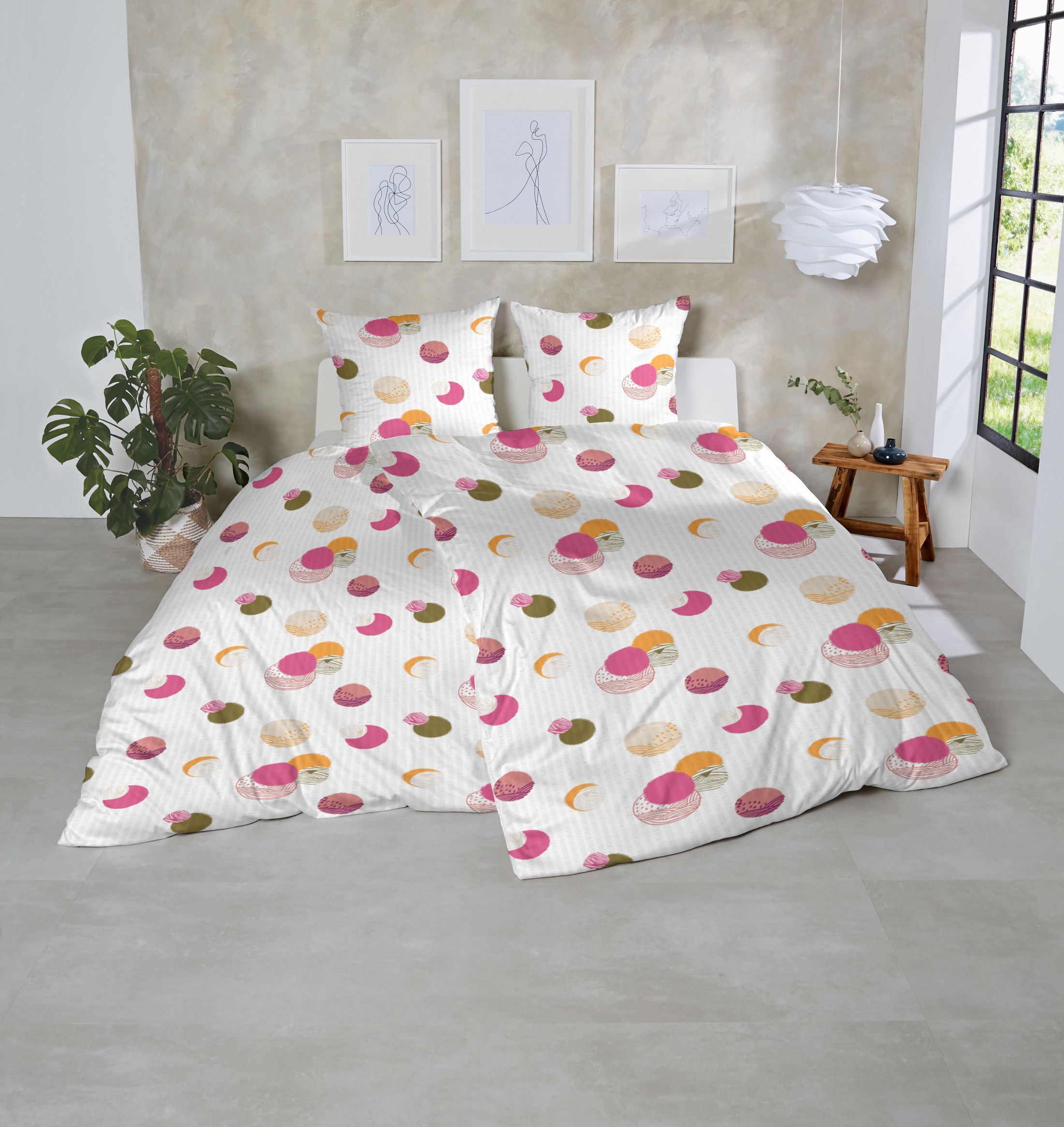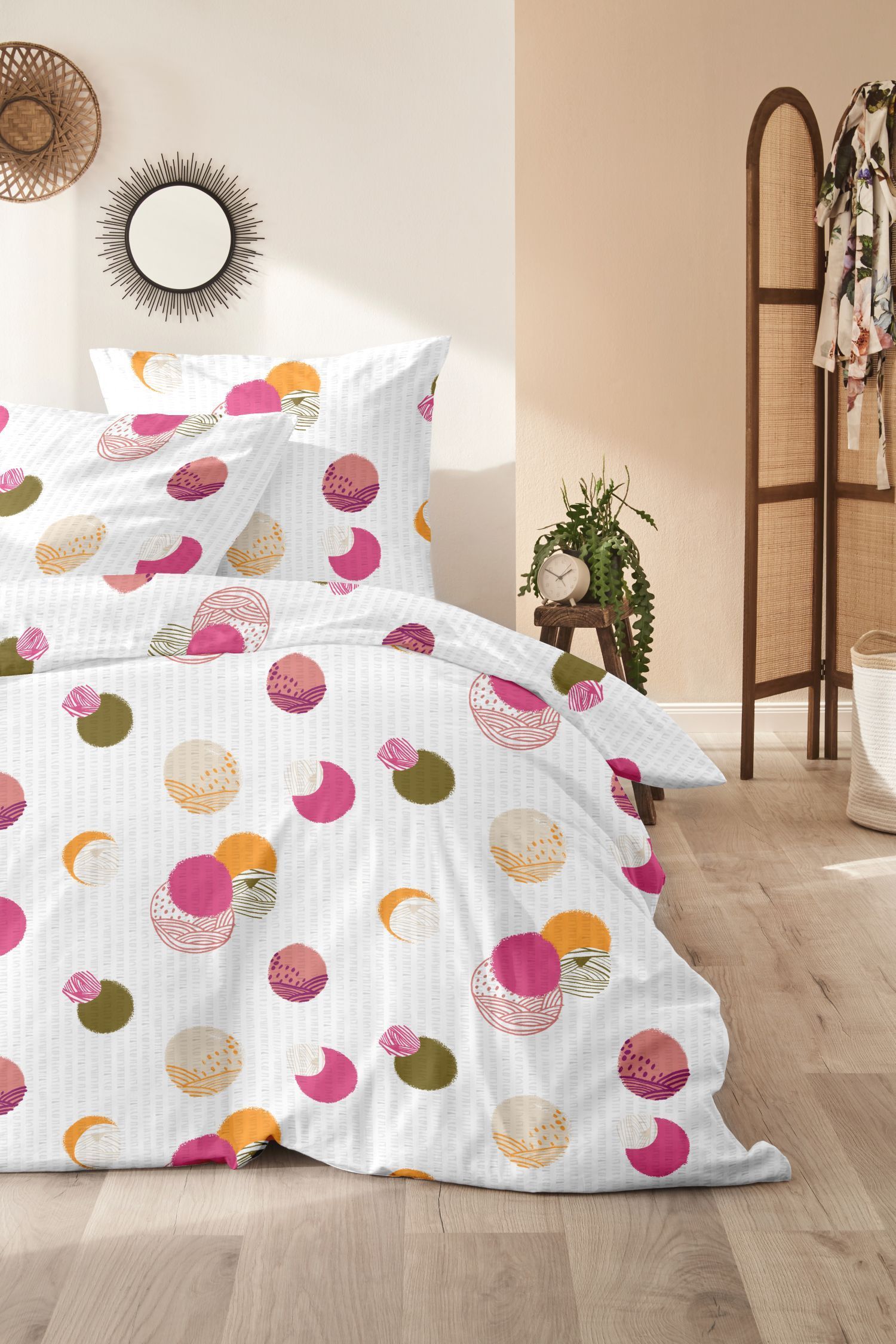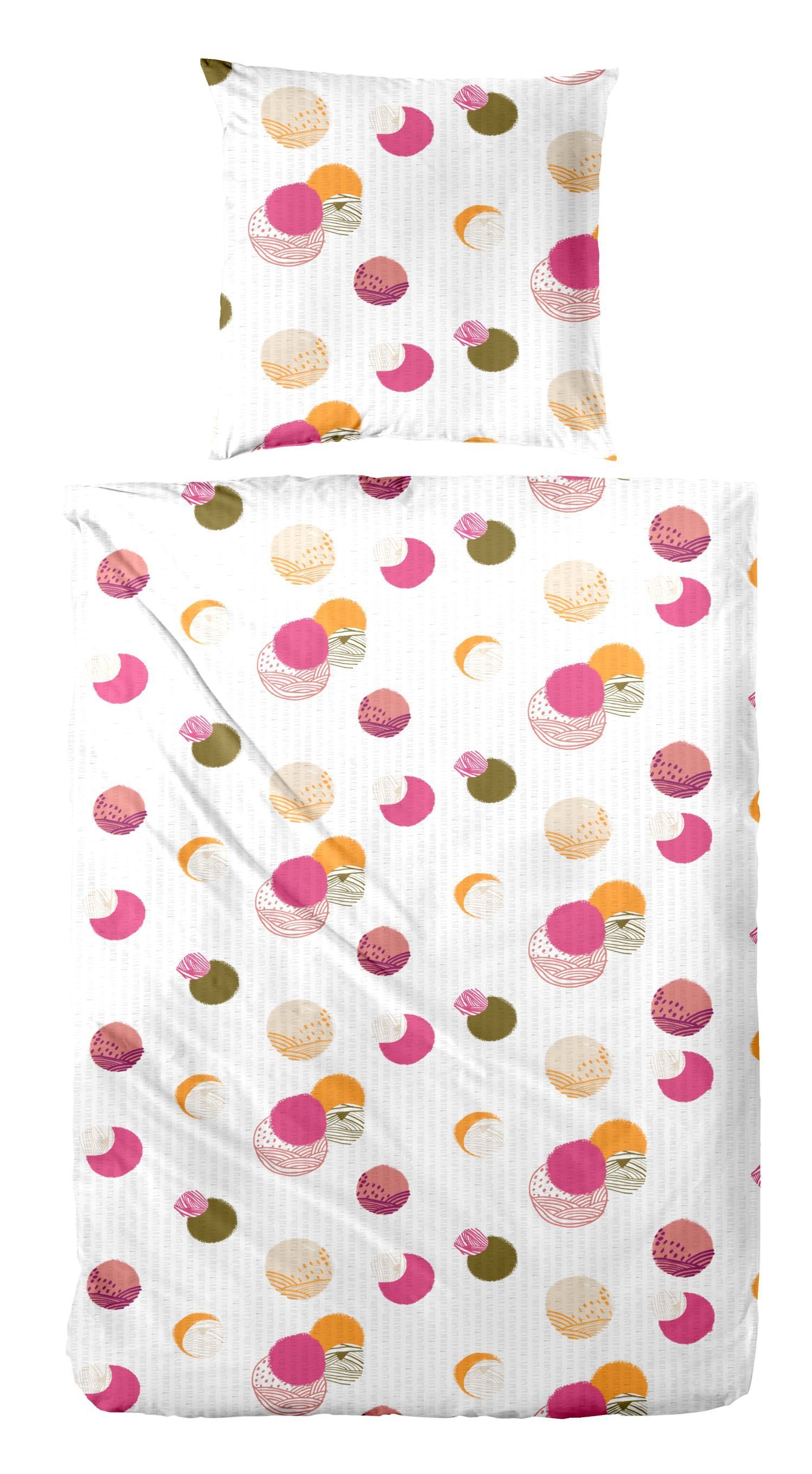 Primera Primera Soft-Seersucker Bettwäsche 135x200 Punkte Kreise pink weiß 213067-41