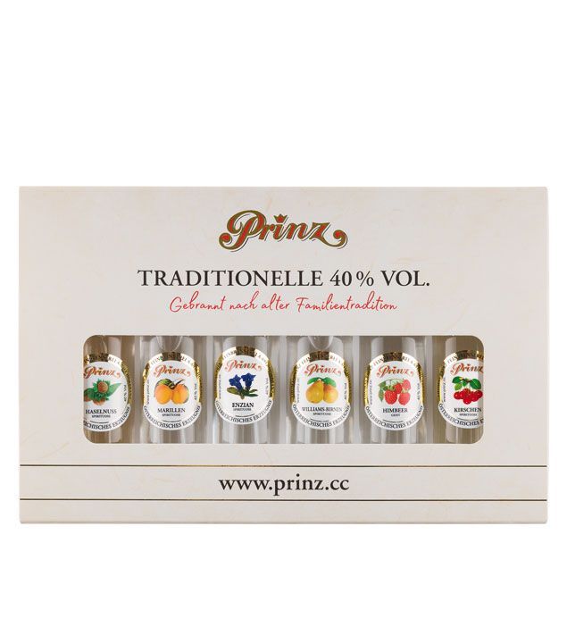 1 x Kirsche 40 % Vol. - 4cl Miniatur (Glas) 1 x Haselnuss 40 % Vol. - 4cl Miniatur (Glas) 1 x Marille 40 % Vol. - 4cl Miniatur (Glas) 1 x Himbeer 40 % Vol. - 4cl Miniatur (Glas) 1 x Williamsbirne 40 % Vol. - 4cl Miniatur (Glas) 1 x Enzian 40 % Vol. - 4cl Miniatur (Glas)