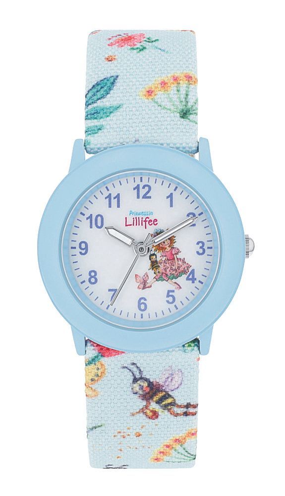 Das schlichte und mit Prinzessin Lillifee gestaltete Zifferblatt erleichtert das Ablesen der Uhrzeit. Diese Uhr hat ein weiches, anschmiegsames Textilarmband mit Edelstahl-Dornschließe und Bienen-Blumen-Motiv. Das Gehäuse besteht aus mattiertem blau eloxierten Aluminium und ist dadurch angenehm leicht. Der Gehäuseboden ist aus Edelstahl gefertigt.