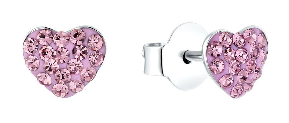 strahlende Ohrstecker in Herzform, 925 Sterlingsilber, anlaufgeschützt durch hochwertige Rhodiumbeschichtung, mit wunderschön rosa funkelnden Kristallen besetzt
