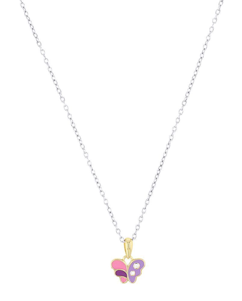 längenverstellbare Rundanker-Halskette mit süßem vergoldetem Anhänger mit buntem Schmetterlings-Motiv besetzt mit2 funkelnden Zirkonia (syn.), 925 Sterlingsilber, anlaufgeschützt durch hochwertige Rhodiumbeschichtung