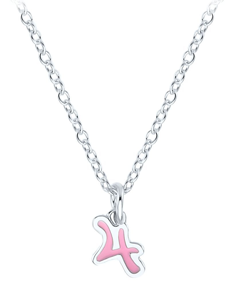 längenverstellbare Rundanker-Halskette mit süßem Anhänger mit der Zahl 4, welche innen rosafarben ist. 925 Sterlingsilber, anlaufgeschützt durch hochwertige Rhodiumbeschichtung