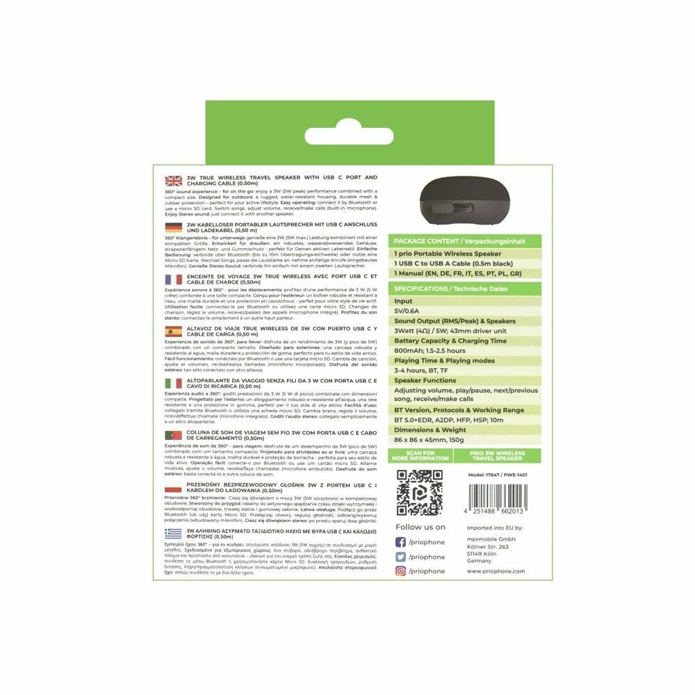 prio 3W Kabelloser Reise-Lautsprecher HIT Mini Grau