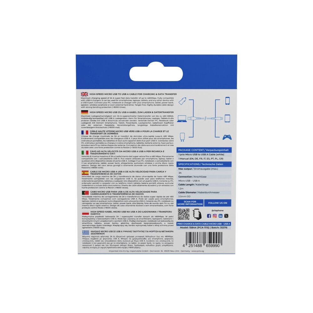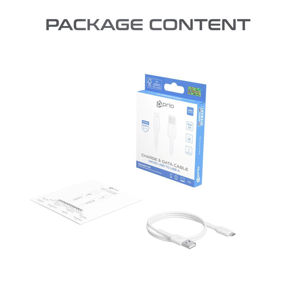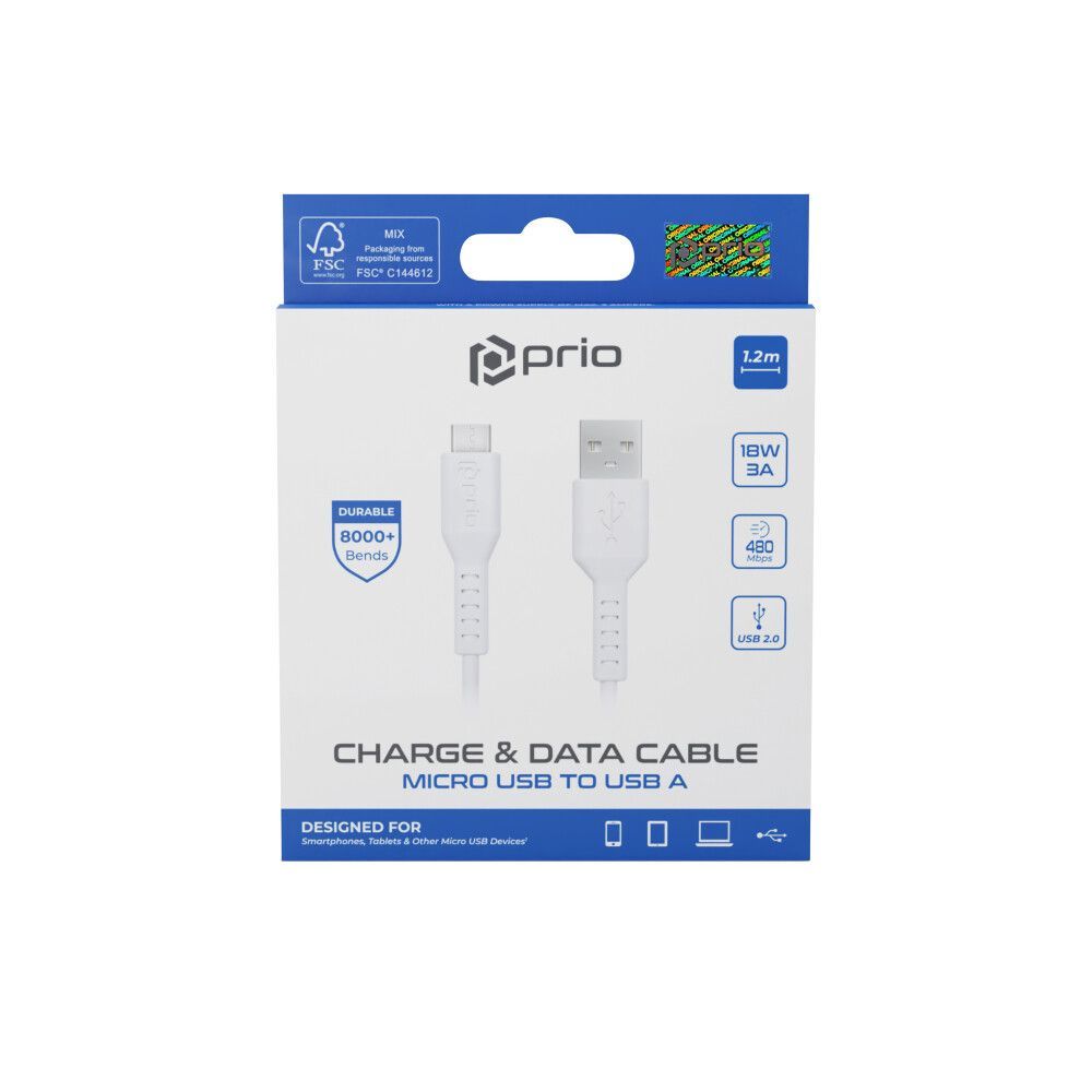 prio Lade & Sync Micro USB zu USB A Kabel 1.2m weiß