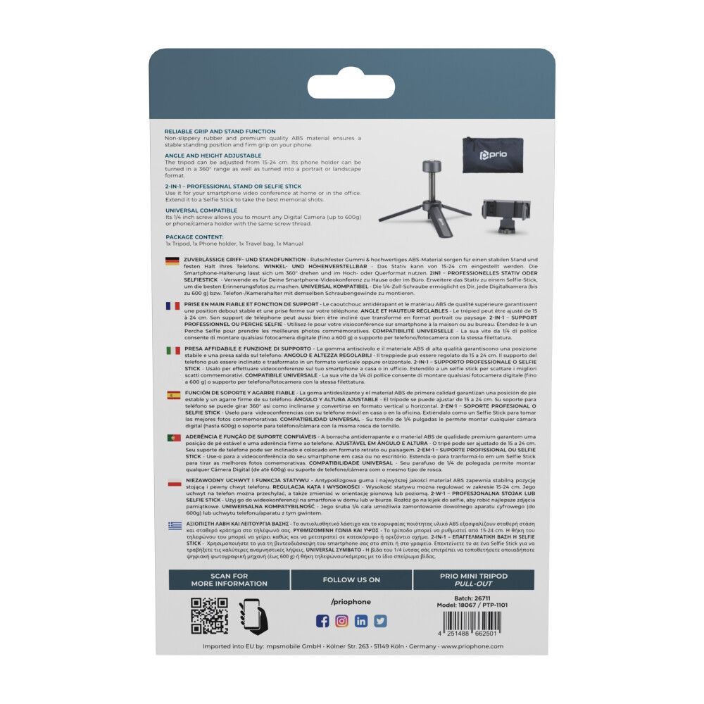 prio Mini Tripod & Selfie-Stick, 360° drehbar, Höhenverstellbar, rutschfest für stabi
