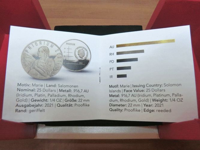 Verkaufe eine Priorium Goldmünze Marie. Dies ist die neue Schweizer Vreneli in Supergold. In Anlehnung an die teilweise über 100 Jahre alten Vreneli Münzen, hat der Schweizer Gold Produzent PAMP die neue Vreneli von 2020-2024 jährlich mit wechseldem Motiv herausgegeben. Die Abbildung der Dame ist de
