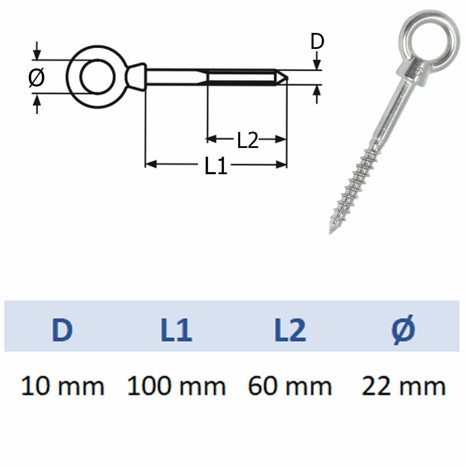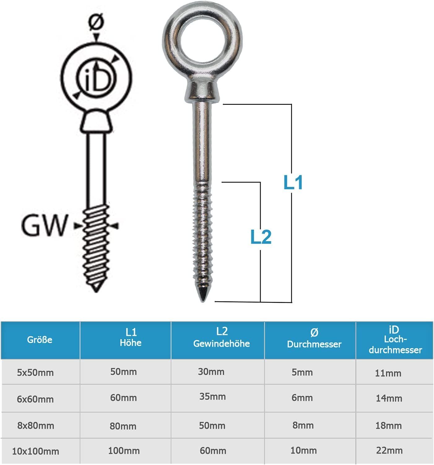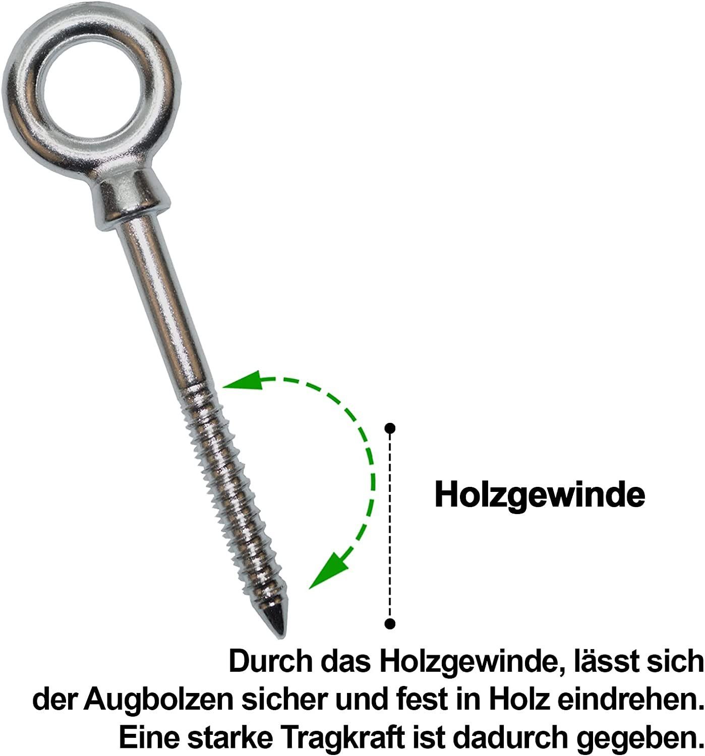 PRIOstahl Augbolzen mit Holzgewinde Öse Ringbolzen Ringschraube aus Edelstahl V4A