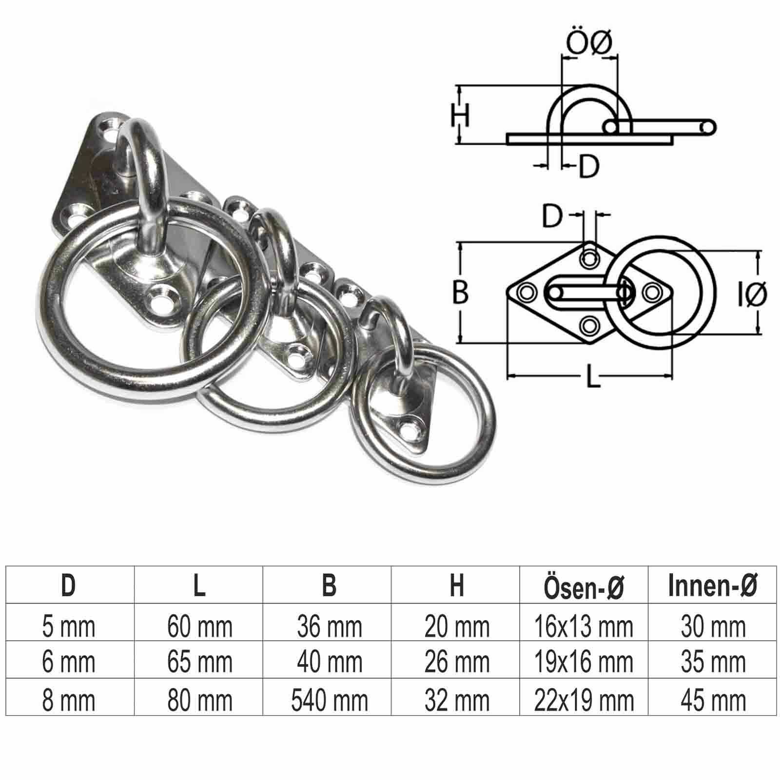 PRIOstahl Augplatte Mastplatte Raute mit Ring Befestigungshaken aus Edelstahl V2A