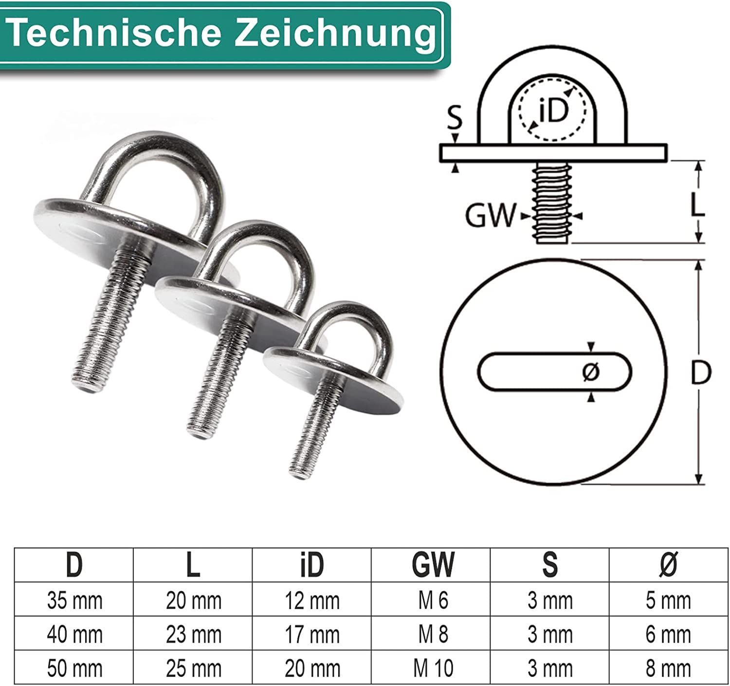 PRIOstahl Augplatte mit Gewinde Augbolzen Deckenhaken Ösenplatte aus Edelstahl V2A