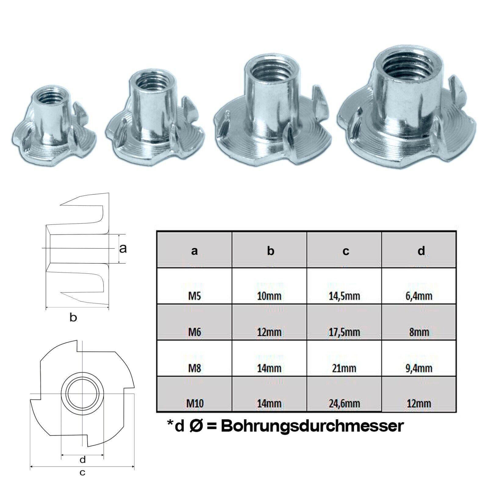 PRIOstahl Einschlagmuttern Einschlagmuffen Gewinde M5 - M10 Stahl verzinkt