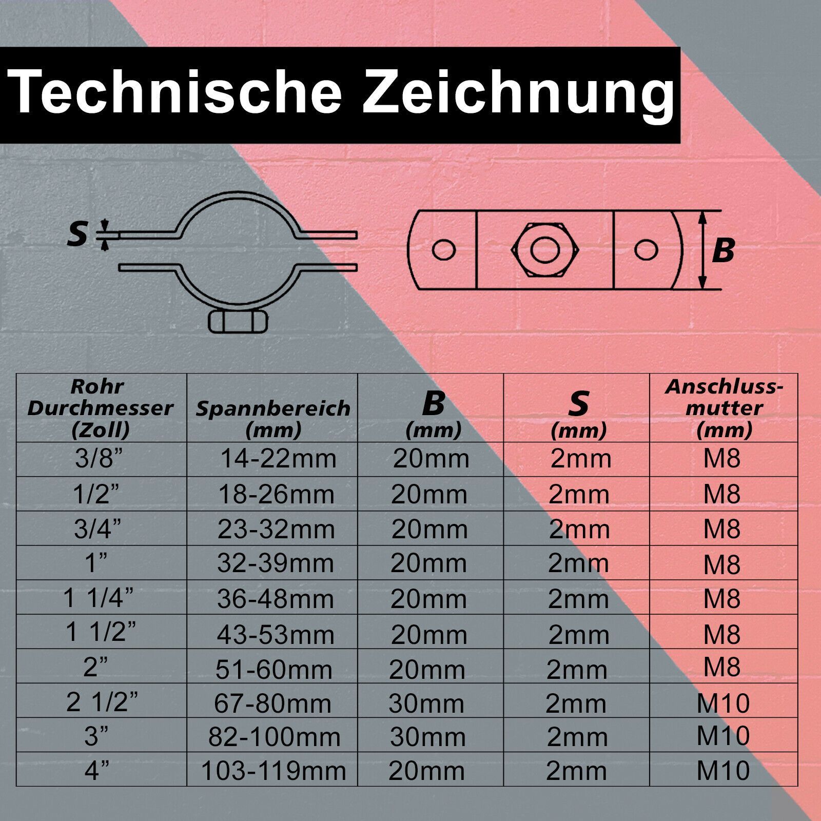 PRIOstahl Rohrschellen Klemmschelle Rohrhalter Rohrbefestigung Rohr aus Edelstahl V2A