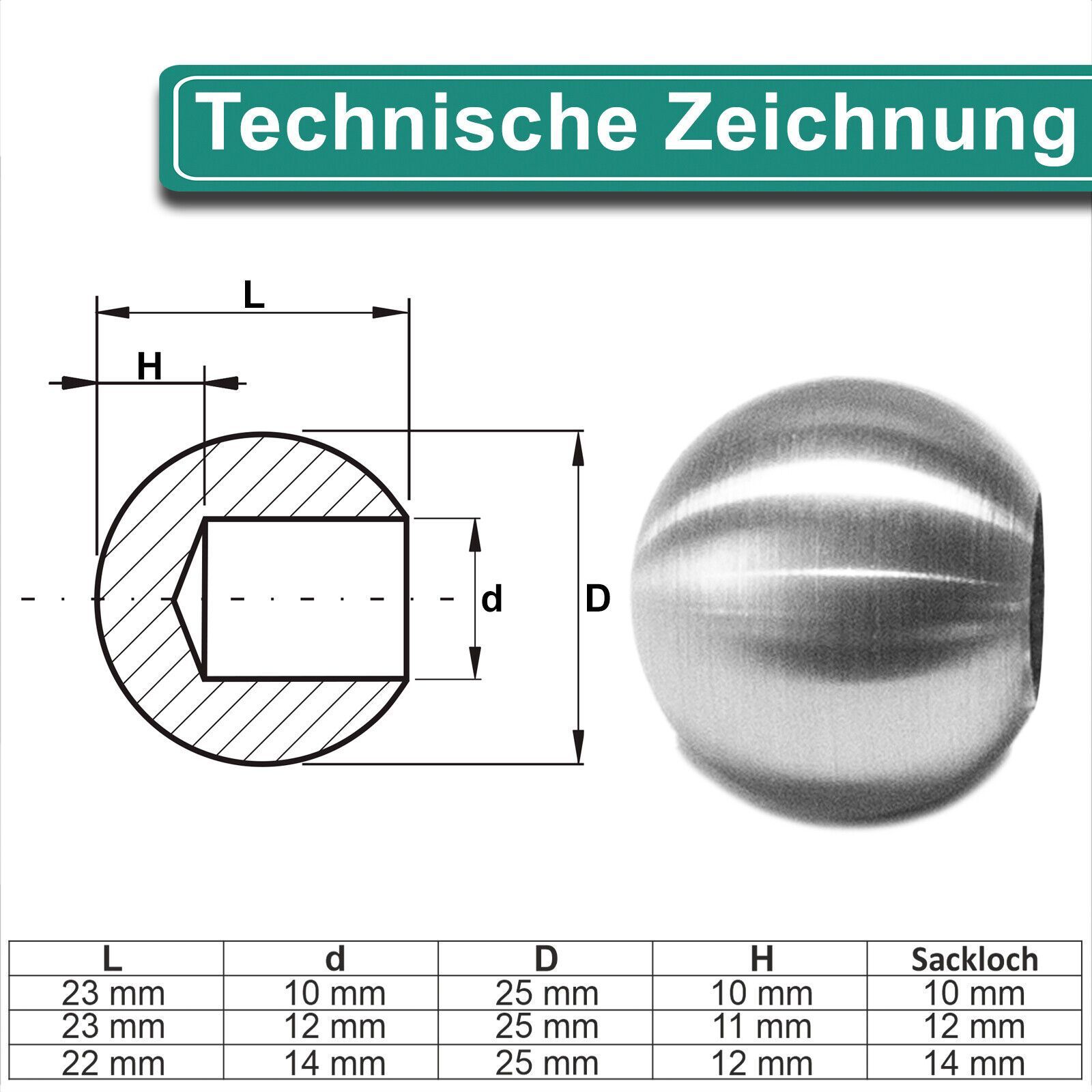 PRIOstahl Vollkugel Kugel Edelstahlkugel V2A 20mm 25mm Geländer Stab Abschlusskugel