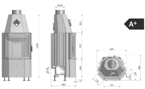 Prisma M Warmluft-Kamineinsatz 8kW Prisma Scheibe