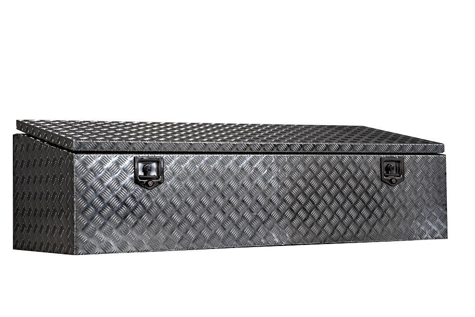 Pritschenkasten Aluminium, Deckel abgeschrägt Ein oder Zwei abschließbare Edelstahlverschlüsse verhindern den ungewollten Zugriff Dritter. Vorteile auf einen Blick: stabile Ausführung geringes Gewicht professionelles Auftreten beim Kunden hervorragendes Preis- Leistungs- Verhältnis schafft Platz auf