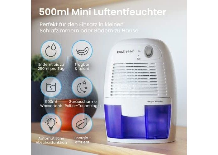 Entfernt Feuchtigkeit: ideal gegen Feuchtigkeit und Schimmel in kleineren Räumen und Bereichen wie z. B. im Badezimmer, Abstellraum, Kleiderschrank oder Wohnwagen Klein und kompakt: Federleicht, kompakt und tragbar. Der elektrische Luftentfeuchter kann mit einem Wassertankvolumen von 500 ml bis zu 2... Mehr